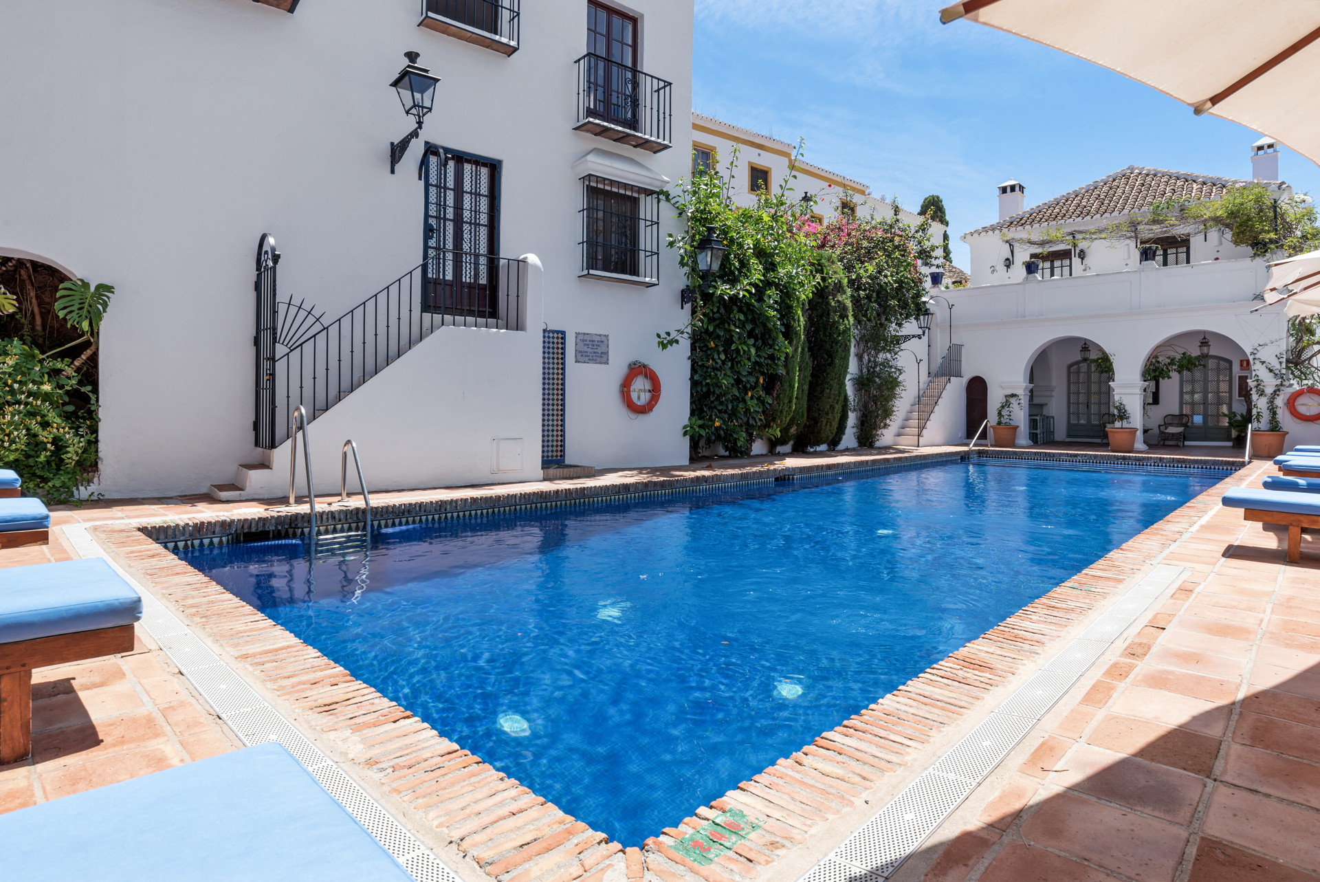 Udendørs kan gæster nyde to private terrasser - den ene ideel til udendørs spisning, den anden indrettet som en afslapningszone med udendørs sofaer, parasoller og en grill. Hovedterrassen byder på direkte udsigt over den store fælles pool, som ligger blot få skridt væk og er omgivet af smukt anlagte haver. Beliggende i et roligt, sikkert, indhegnet område har ejendommen desuden gademæssig parkering i nærheden og nem adgang til Marbellas bedste strande, golfbaner, butikker og restauranter.