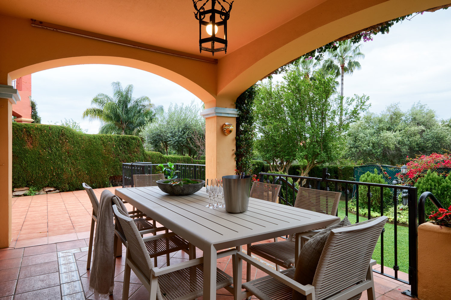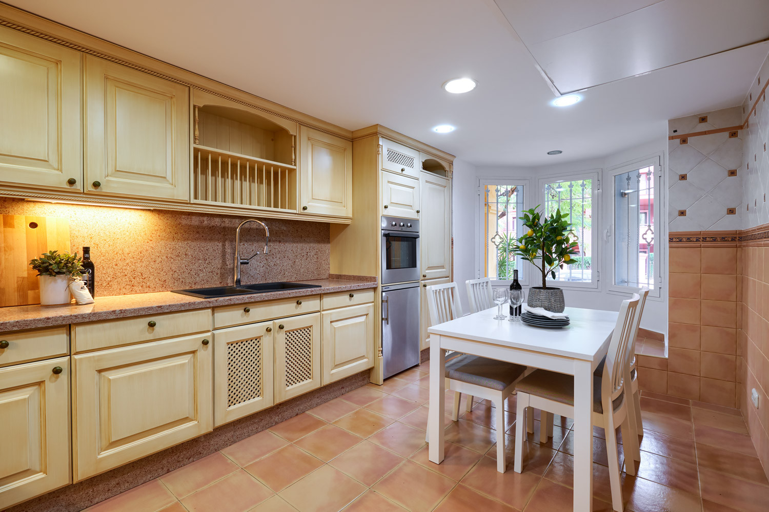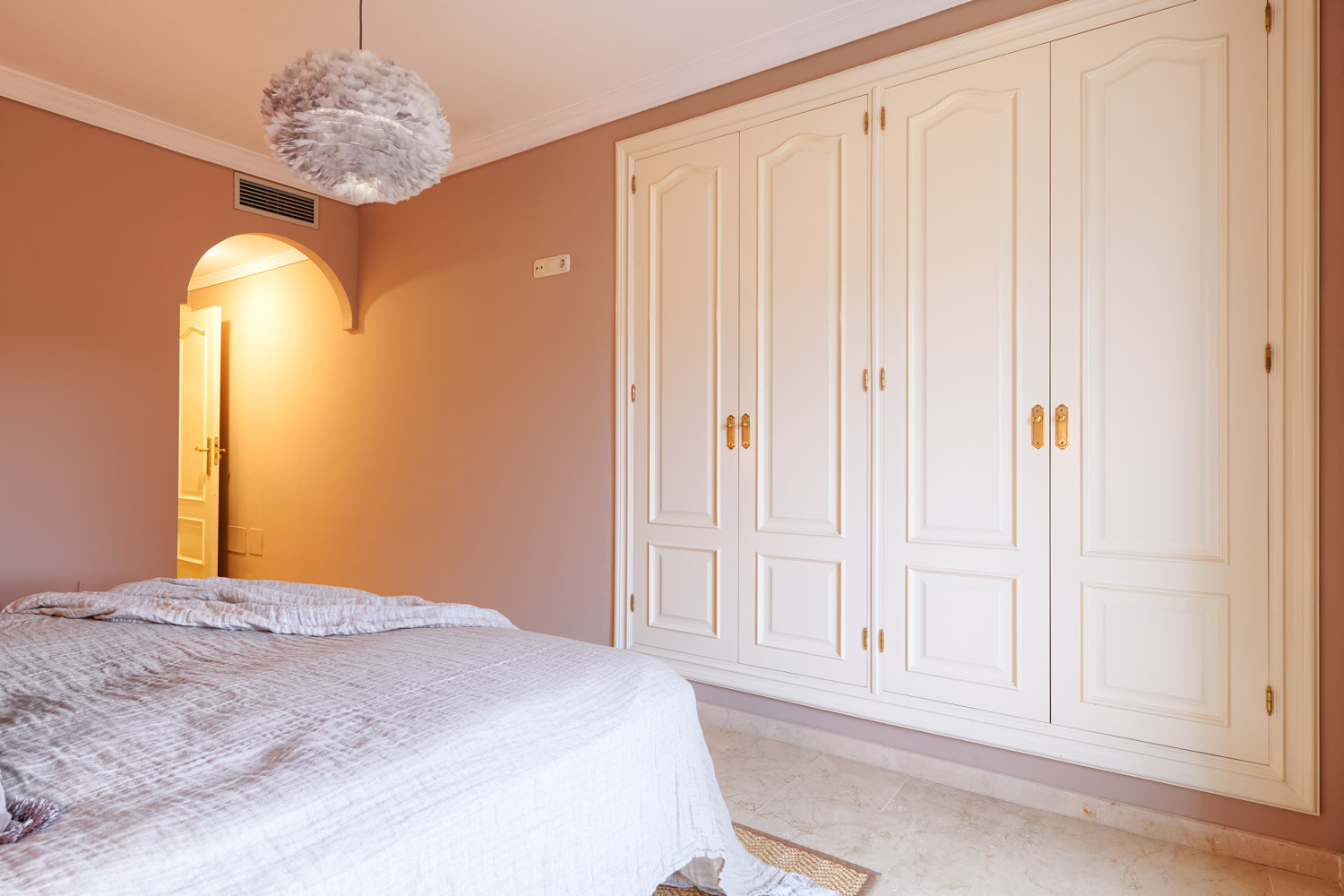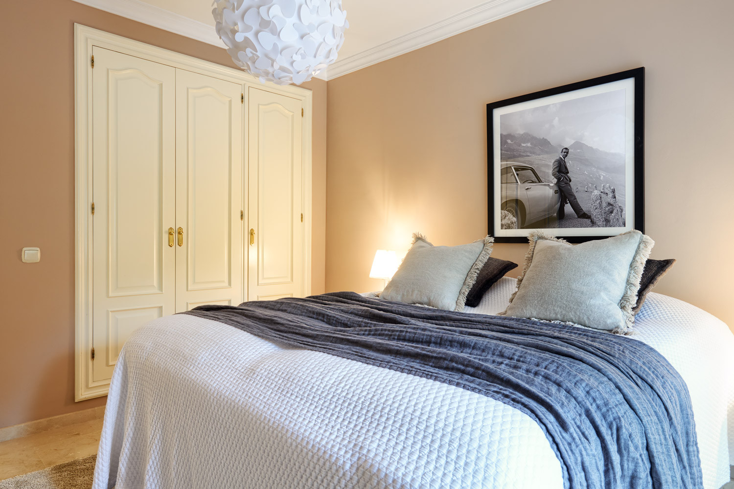 Dette byhus i andalusisk stil i Urbanización Alzambra, Nueva Andalucía, tilbyder en sømløs blanding af middelhavscharme og moderne skandinavisk-inspireret interiør. Neutrale toner, bløde teksturer og elegant indretning skaber en varm og indbydende atmosfære i hele dets 4 rummelige soveværelser og 3 badeværelser. Hvert soveværelse har indbyggede skabe og blødt sengetøj, mens den primære suite har en privat terrasse, perfekt til morgenkaffen eller aftenafslapning. Den åbne planløsning, badet i naturligt lys, forbinder ubesværet med det fuldt udstyrede køkken og spiseplads, suppleret med en hyggelig pejs og komfortable siddepladser, hvilket gør det ideelt til både korte og lange ophold.