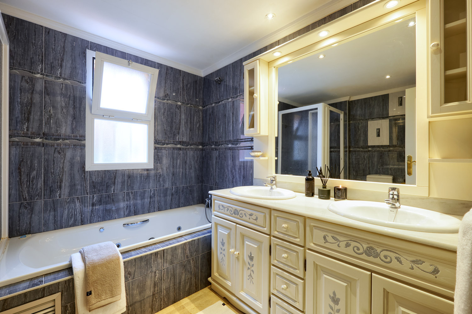 Husets iøjnefaldende egenskab er dens ekspansive tagterrasse, der tilbyder en betagende udsigt over bjergene, elegante lounge siddepladser og liggestole til at slikke solen. Uanset om du spiser udendørs eller slapper af under de charmerende buegange, giver dette udendørsområde et fredeligt tilflugtssted. Inden for det sikre lukkede samfund har gæsterne adgang til en smukt vedligeholdt swimmingpool med liggestole og skyggefulde områder, omgivet af frodige haver, der forbedrer den rolige stemning. Med tre moderne badeværelser, inklusive et stilfuldt ensuite i master bedroom, er komfort og bekvemmelighed prioriteret. Privatliv og sikkerhed er altafgørende, hvilket sikrer et bekymringsfrit ophold.