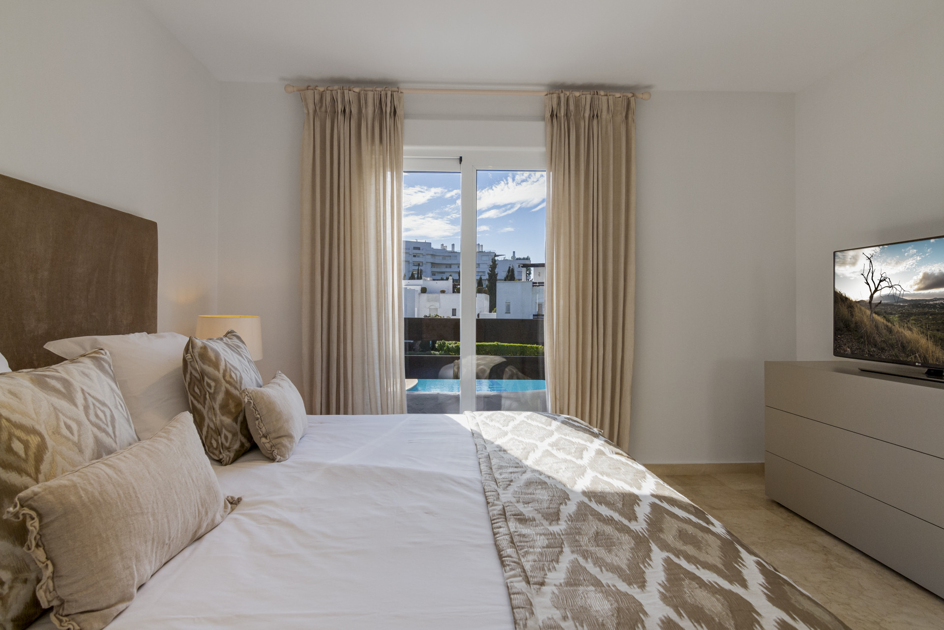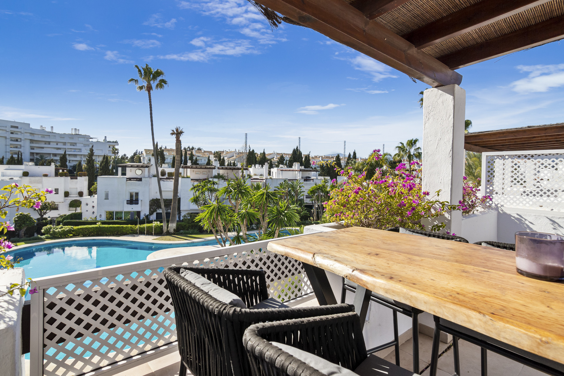 Beliggende i det lukket boligkompleks Casa Guadalvillas ligger ejendommen blot 200 meter fra stranden, restauranter og lokale faciliteter. En behagelig 15-minutters gåtur bringer dig til San Pedro Boulevard, kendt for sin livlige atmosfære, restauranter, butikker, legepladser og charmerende Old Town. Puerto Banús ligger kun 5 minutters kørsel væk, og Marbella og Estepona kan nås inden for 10–15 minutter.