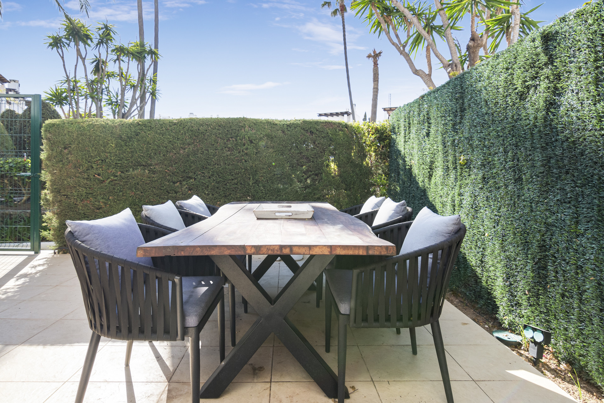 Et smukt renoveret 3-værelses rækkehus med en komfortabel tagterrasse, ideelt beliggende blot et kort stykke fra stranden. Beliggende i et lukket boligkompleks med 24/7 sikkerhed.