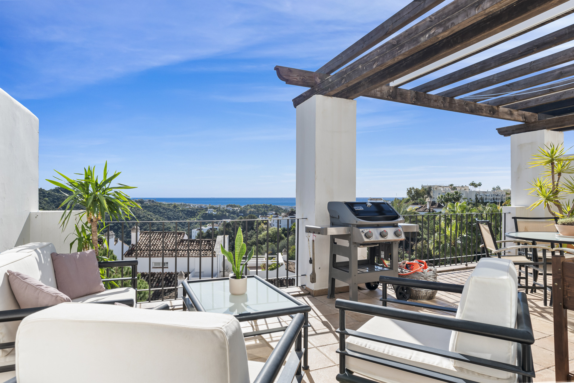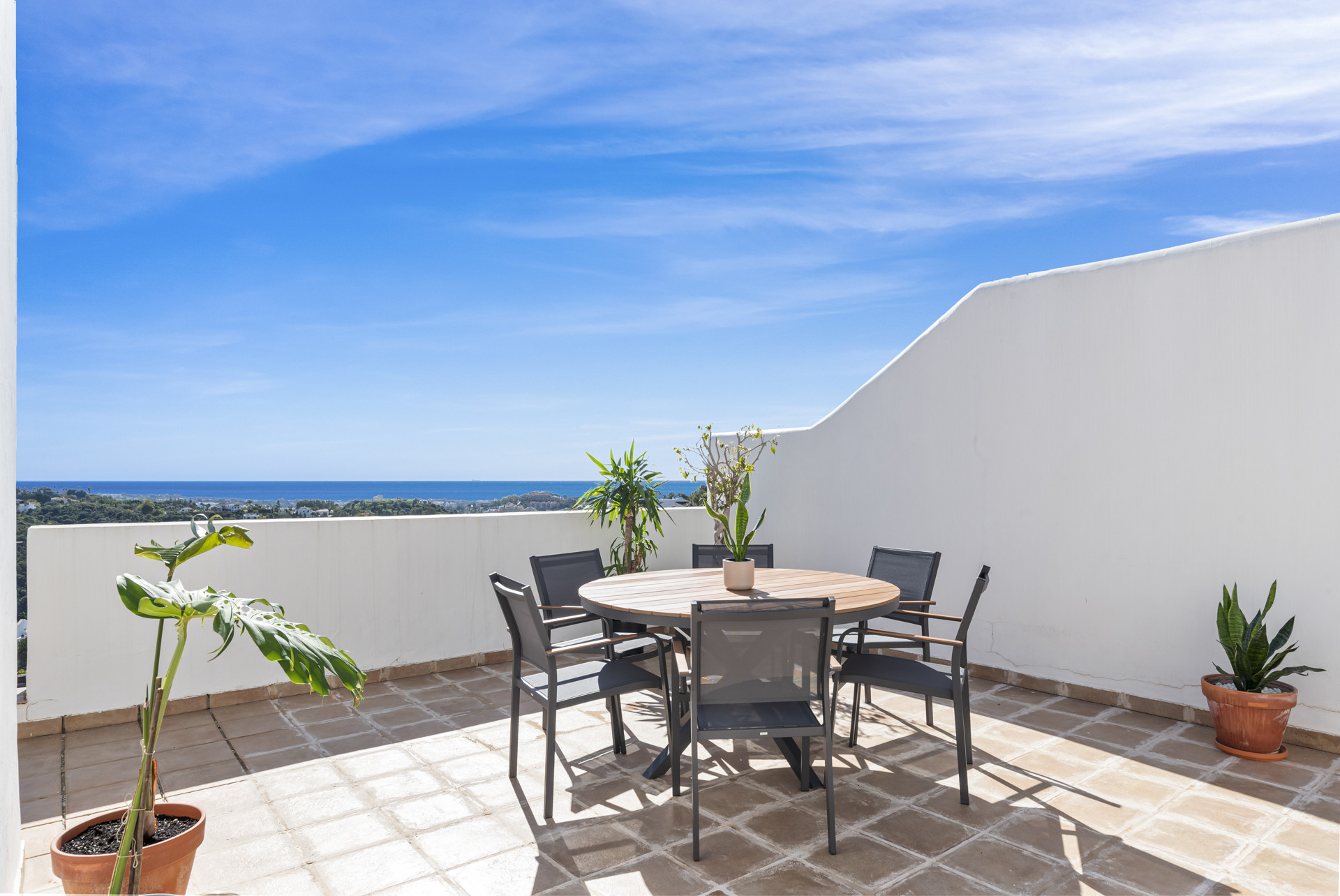 Penthouse Los Olmos er en fantastisk, nyligt renoveret 3-værelses penthouse i det eftertragtede kvarter La Quinta med utrolige udsigter over La Concha og Middelhavet med de nordlige kyster af Afrika i baggrunden.