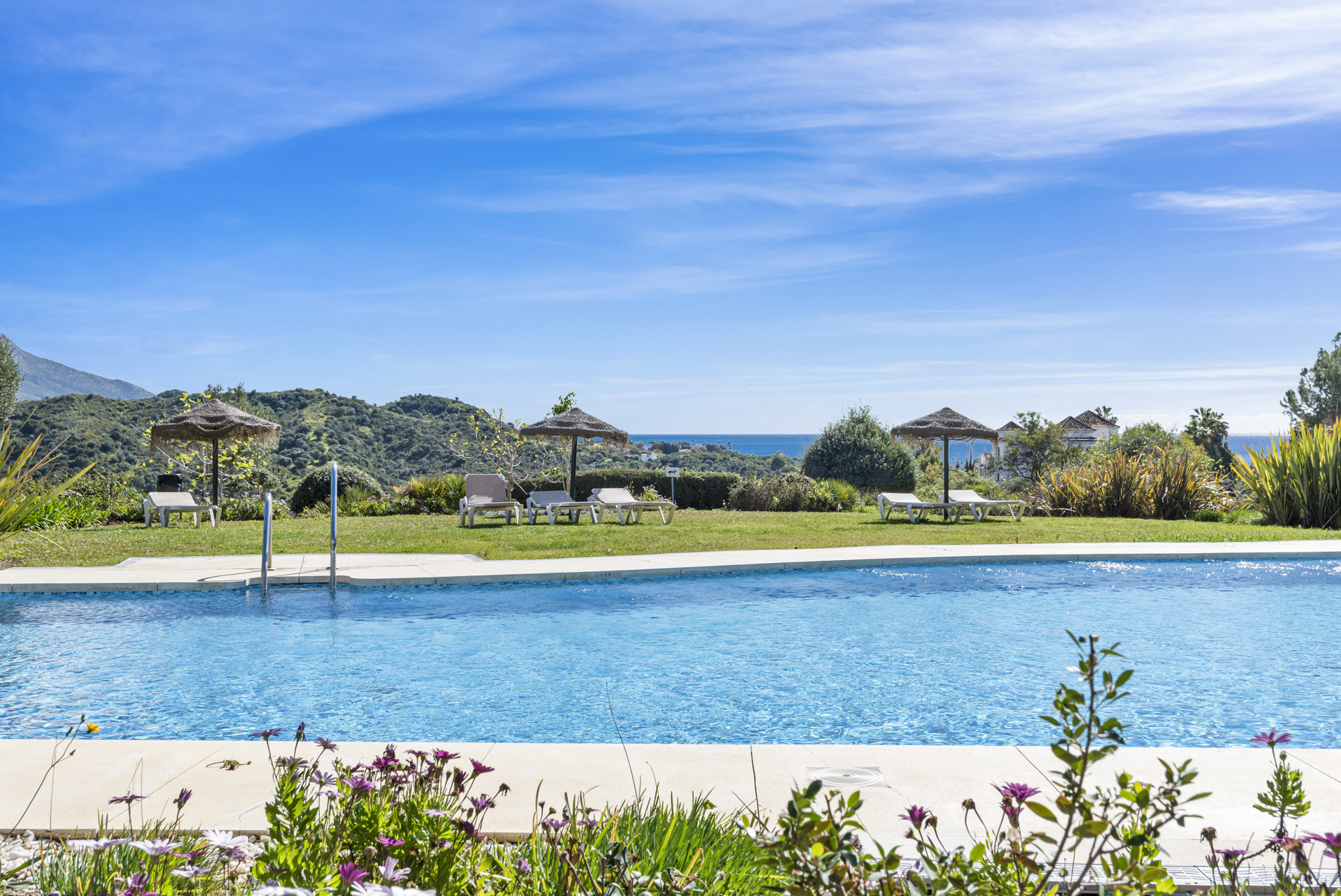 Velkommen til jeres perfekte kystlige tilflugtssted — et storslået 3-soveværelses, 2-badeværelses hjem beliggende i det fredelige og eksklusive lukkede boligområde i La Quinta-området. Denne stilfulde ejendom tilbyder den ideelle kombination af afslapning, komfort og adgang til nogle af de smukkeste omgivelser på Costa del Sol.