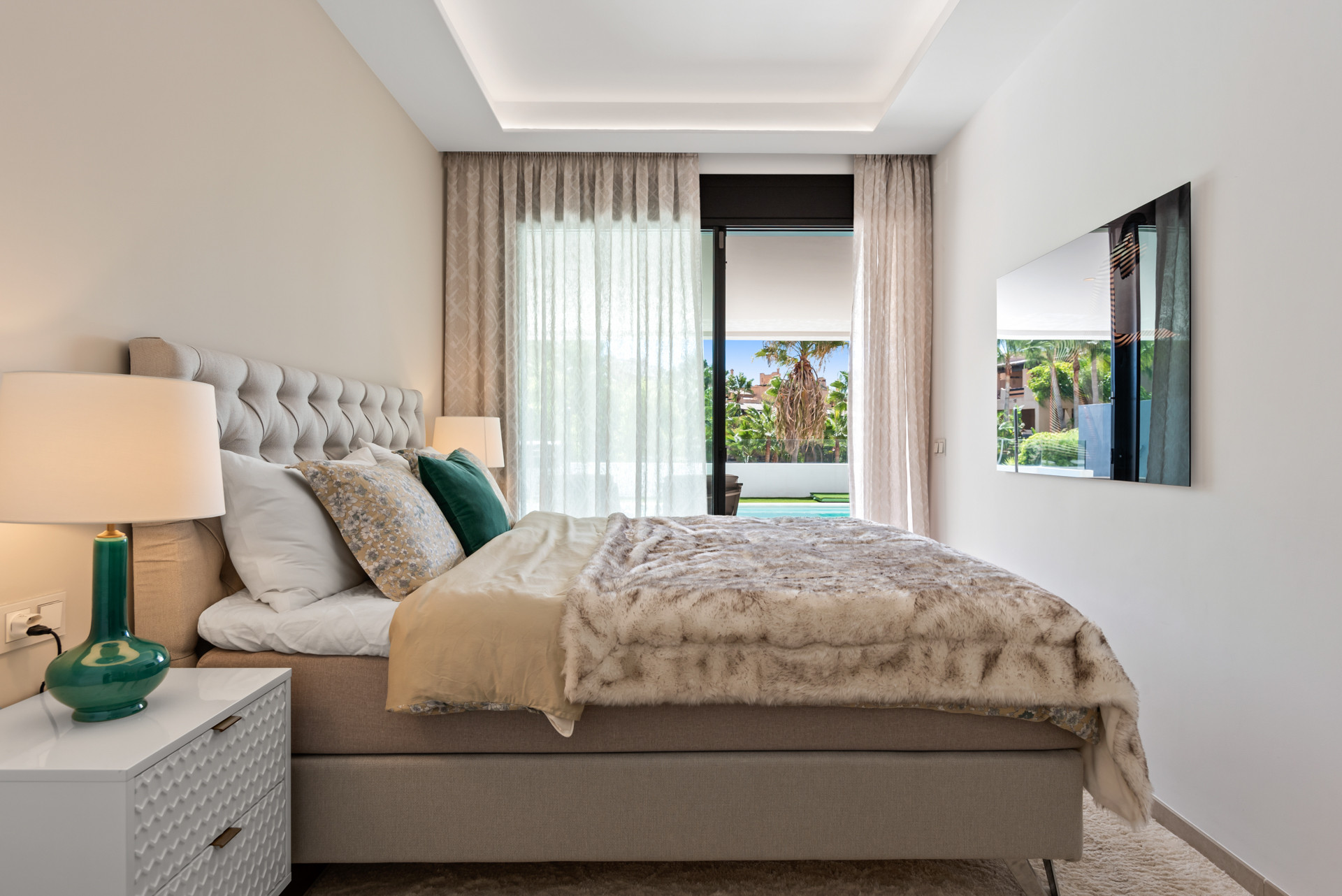 Flyt til den solbeskinnede paradis på Costa Del Sol og nyd den ultimative ferieop-levelse i vores fantastiske 2-værelses, 2-badeværelses moderne lejlighed på New Golden Mile. Placeret i den prestigefyldte Cataleya-bebyggelse, ved siden af den anerkendte Atalaya golfklub og kun få minutter fra den berømte Puerto Banús, tilbyder denne ejendom et luksuriøst og fredeligt tilflugtssted.