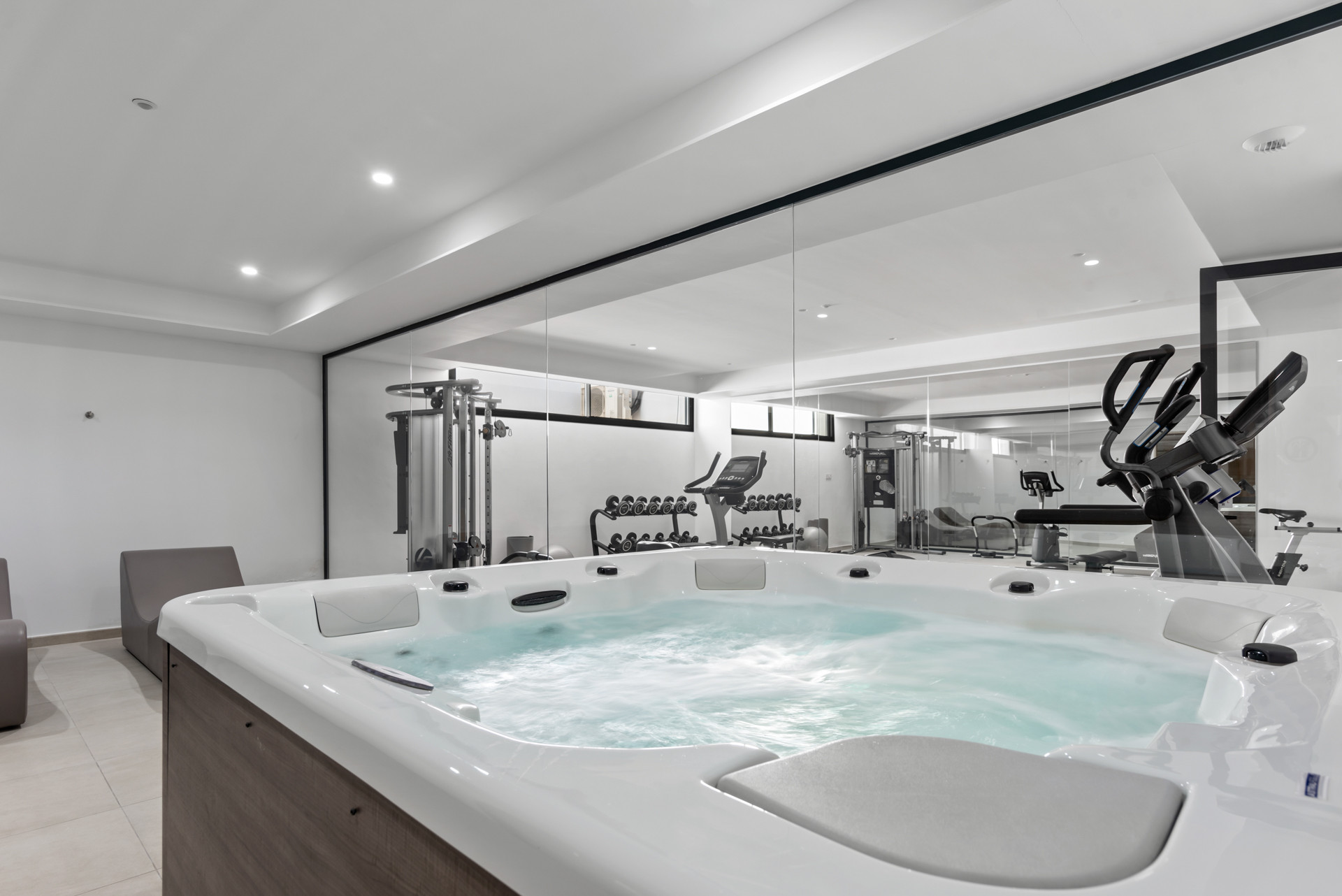 Uden for den indhegnede boligbebyggelse finder du en frodig botanisk have, mens højdepunktet venter med den spektakulære 450 m2 udendørs lagunepøl med saltvand, suppleret af et opvarmet indendørs pool - perfekt til afslappende svømning hele året.