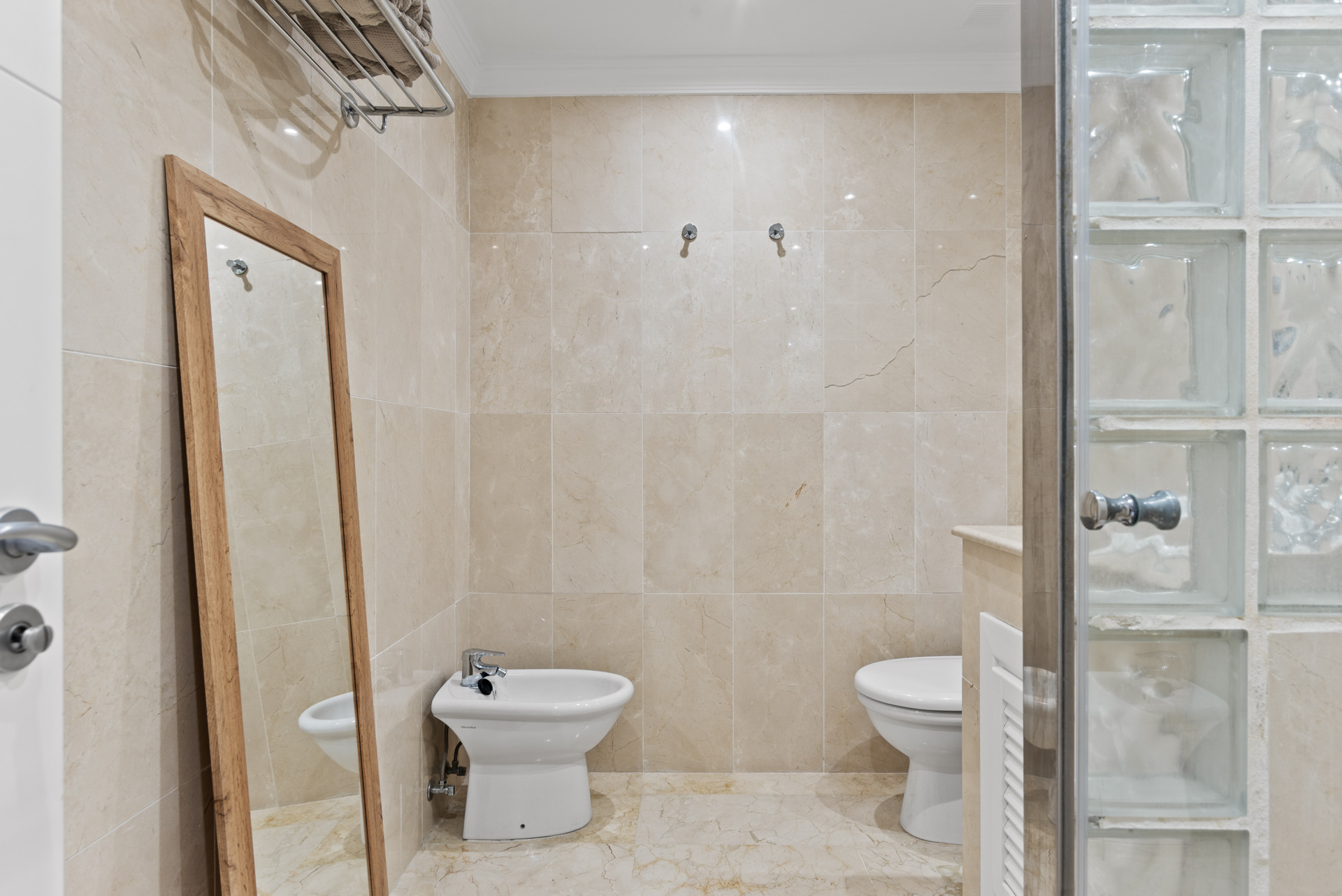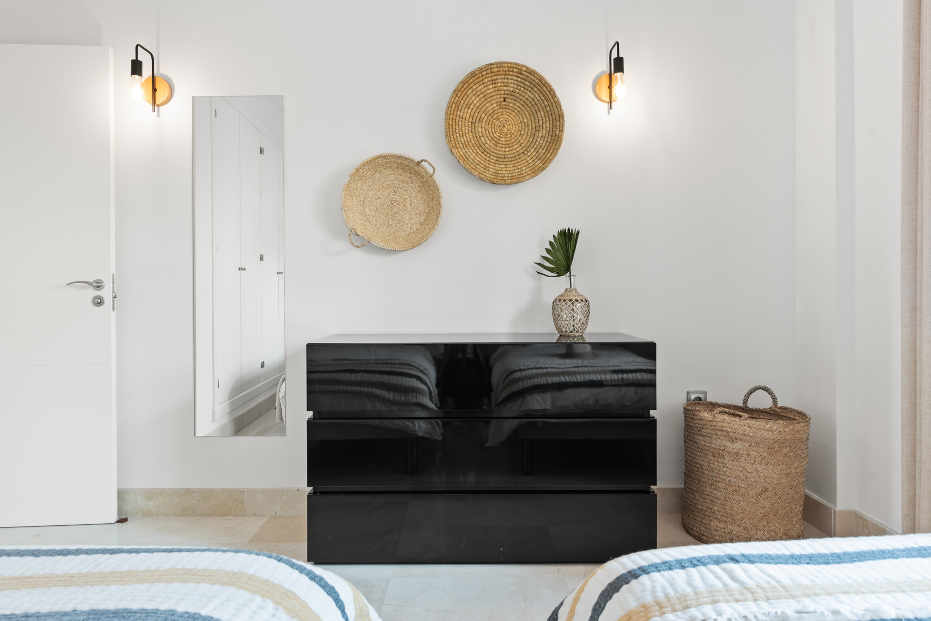 Der er to lyse og rummelige soveværelser. Master-soveværelset har eget badeværelse med bruser og badekar og har glasdøre, der fører ud til terrassen. Det andet soveværelse har en dobbeltseng, masser af stil og masser af skabsplads og et badeværelse lige uden for døren.