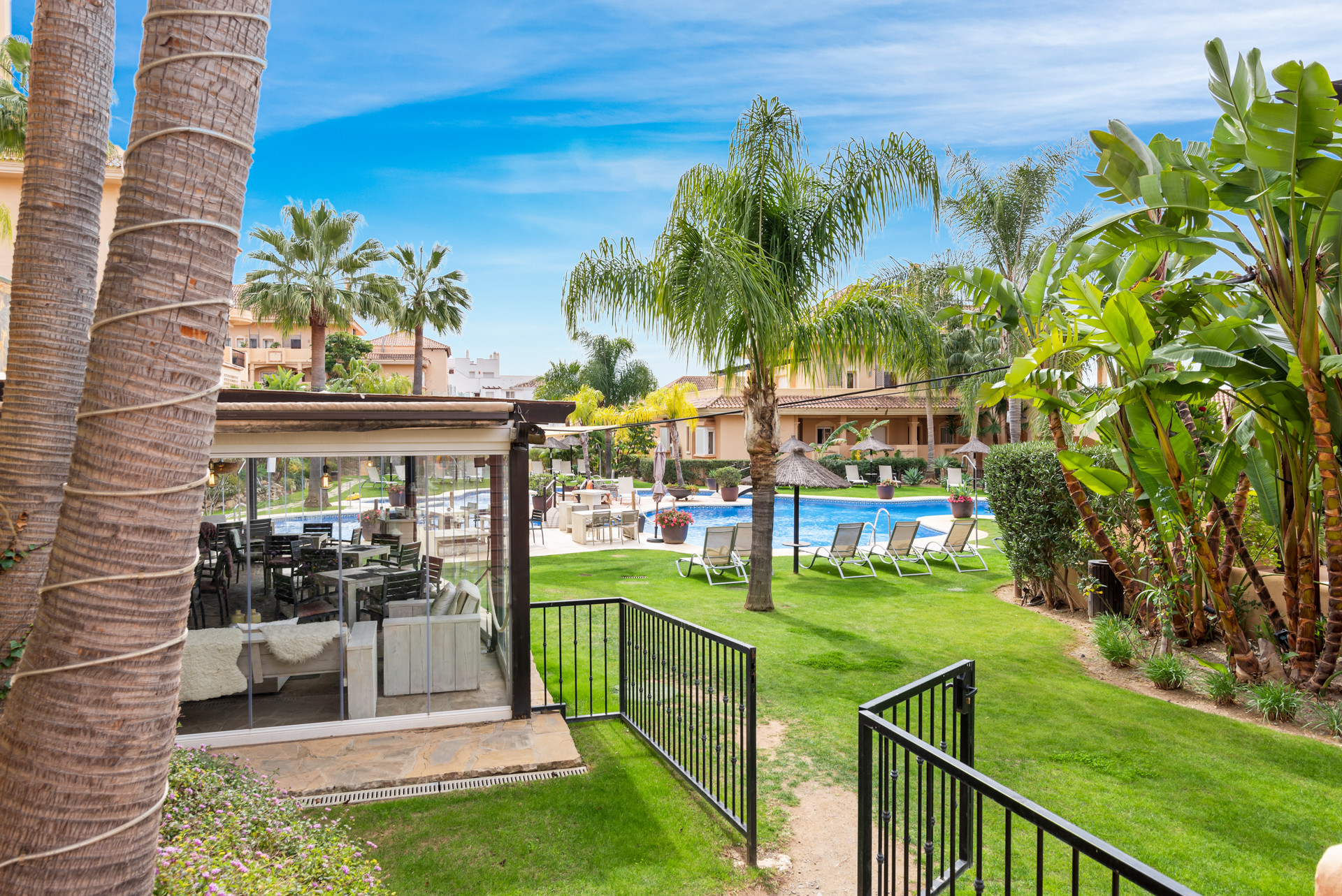 Velkommen til dit Ferieparadis! Denne lyse og rummelige lejlighed, beliggende i et prisvindende kompleks med luksuriøse faciliteter, er dit perfekte tilflugtssted. Den er lys, moderne og omhyggeligt designet, med en stor sydvendt terrasse med udsigt over poolen.