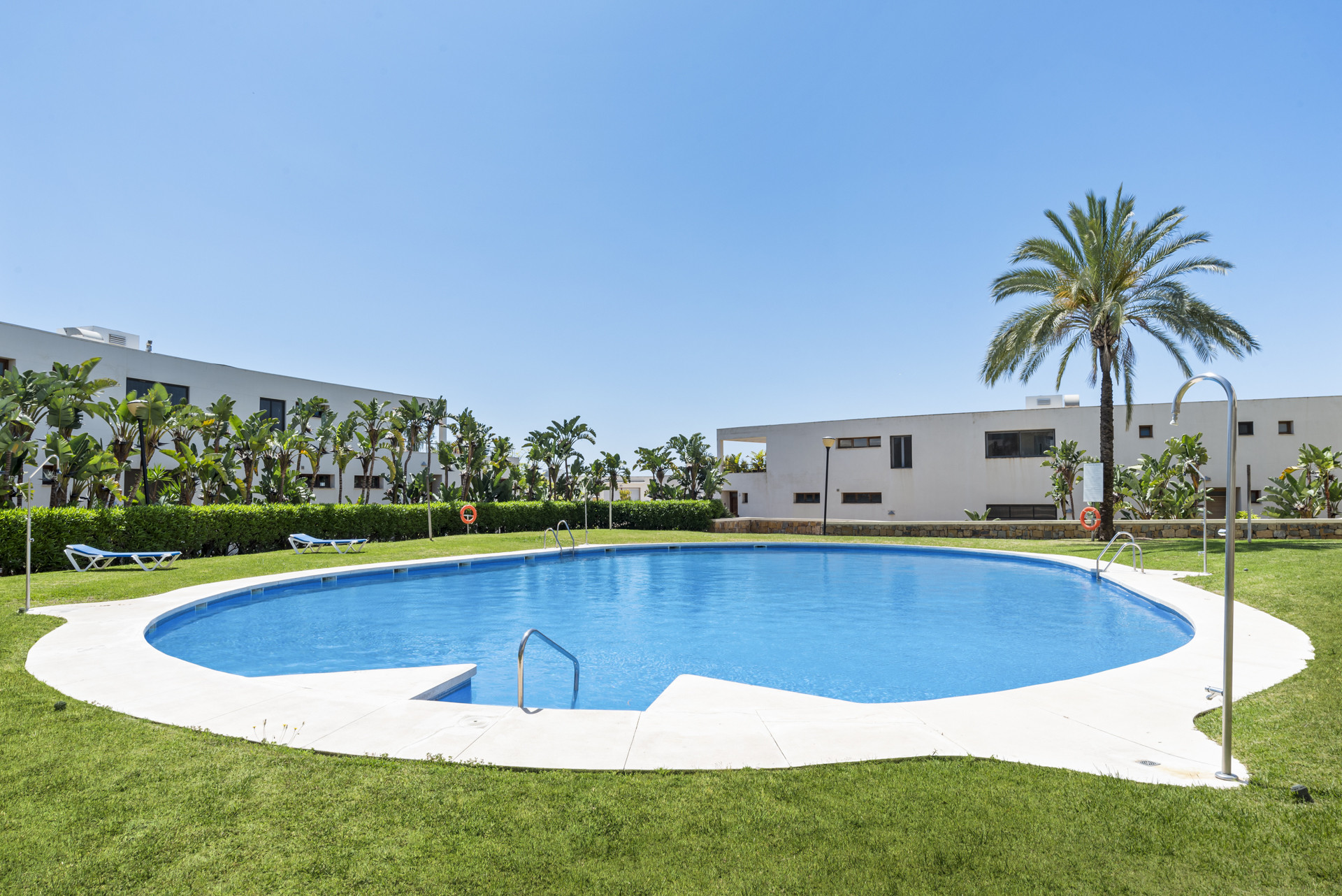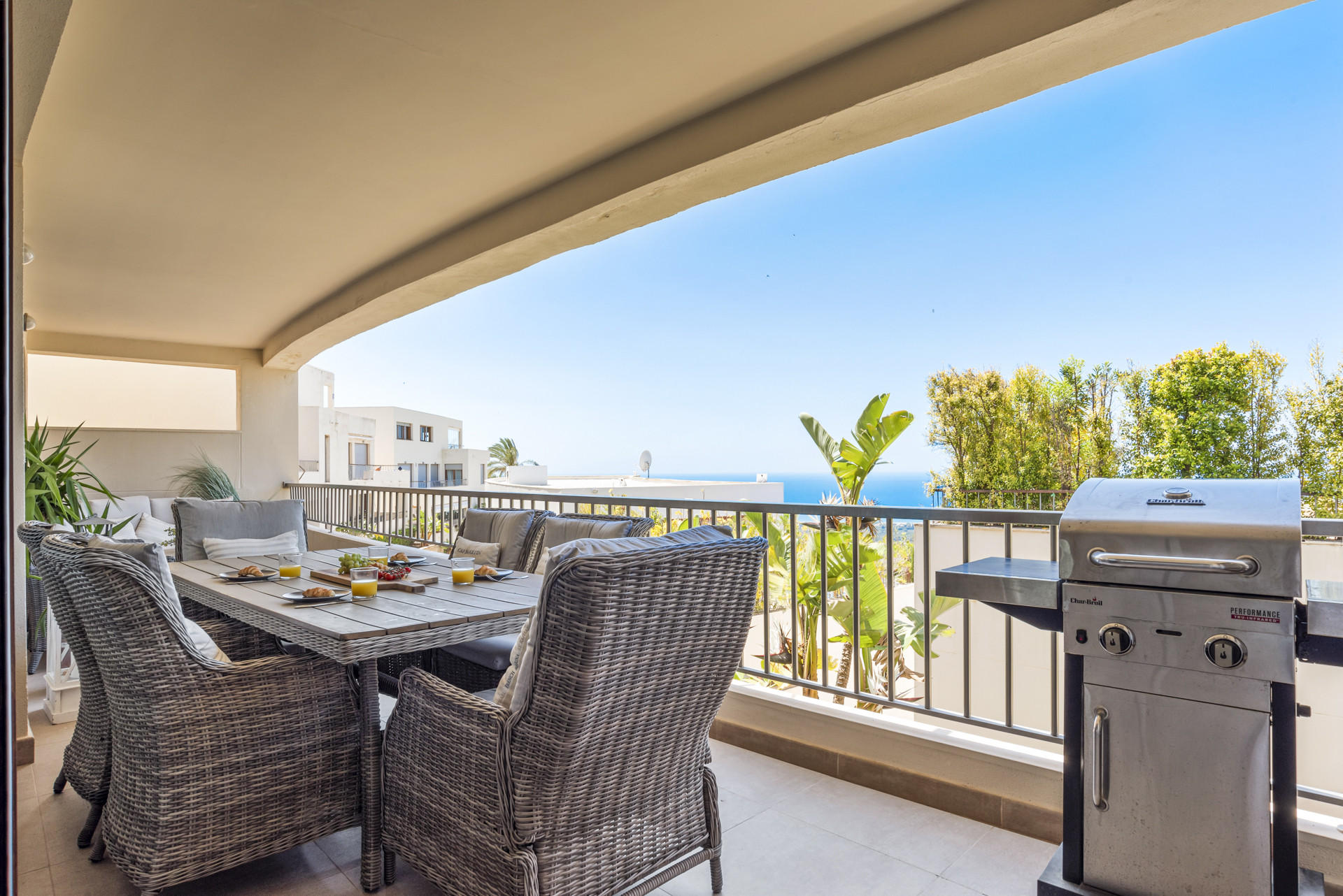 Højdepunktet i denne fantastiske bolig er dens private terrasse, hvor du kan slappe af og nyde middelhavets solskin, mens du nyder en betagende udsigt over de fælles haver, mousserende swimmingpool og det azurblå vand i Middelhavet.