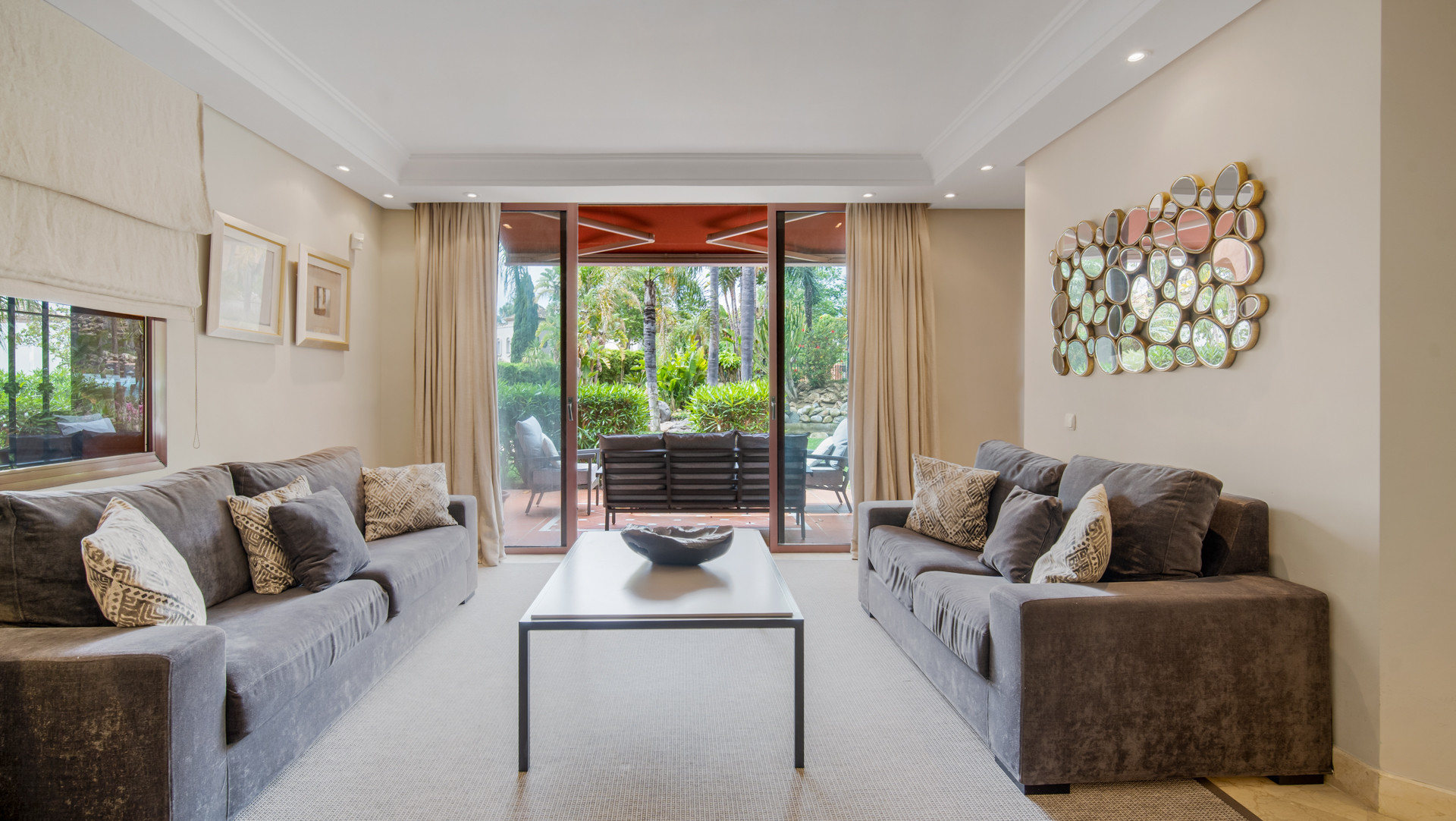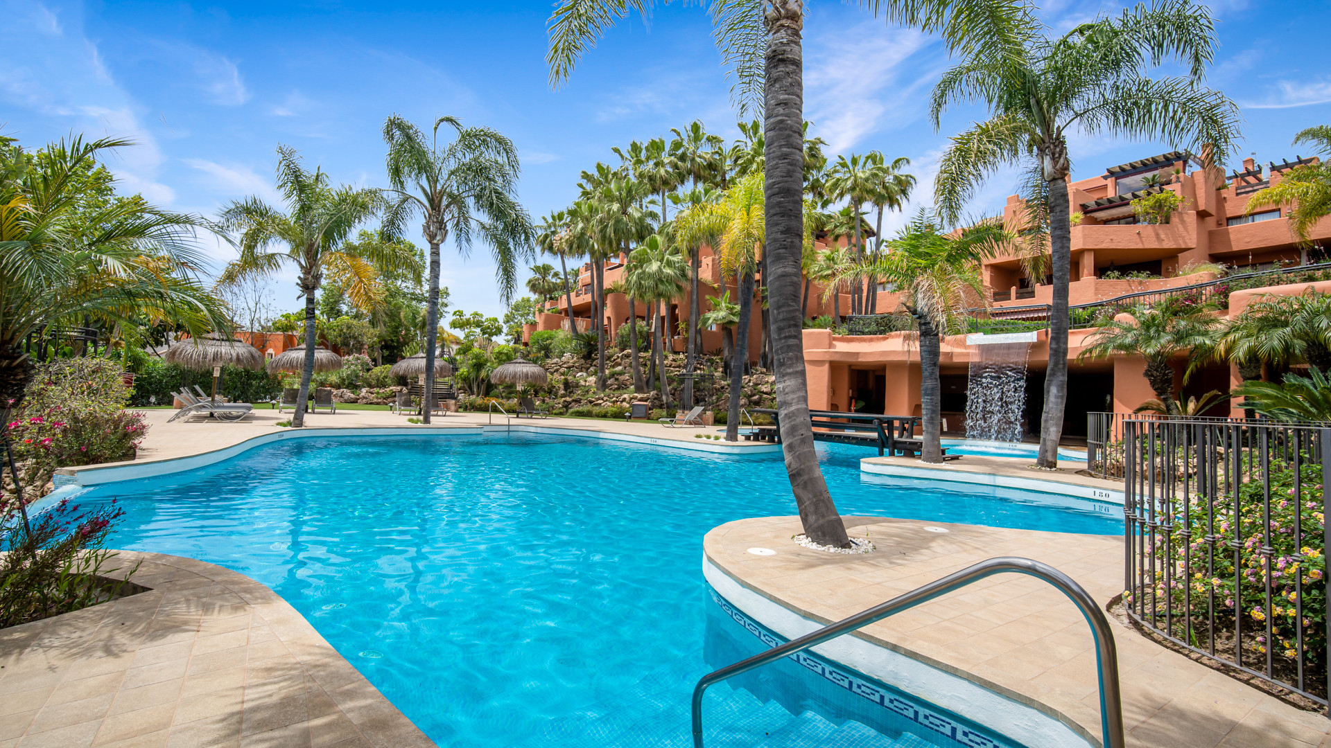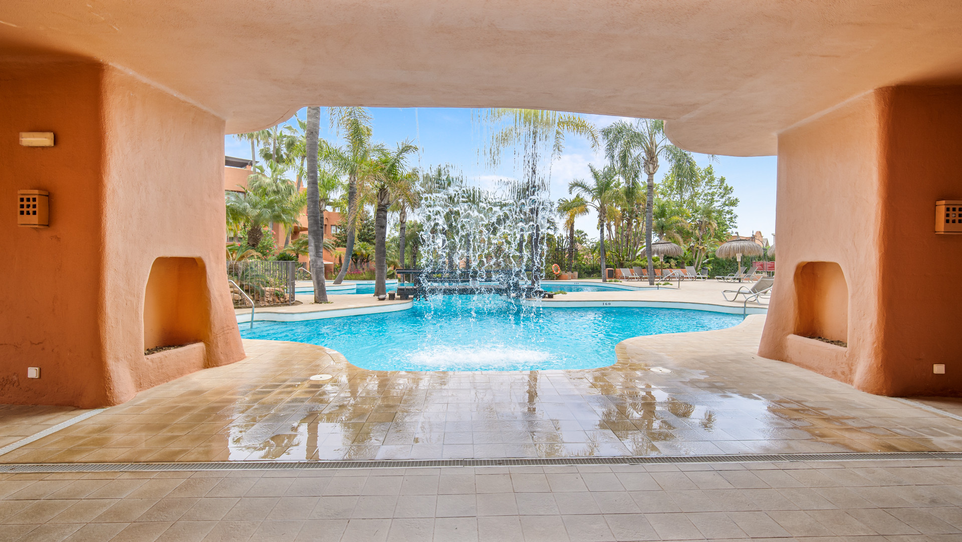 Højdepunktet i denne fantastiske bolig er dens private terrasse, hvor du kan slappe af og nyde middelhavets solskin, mens du nyder en betagende udsigt over de fælles haver, mousserende swimmingpool og det azurblå vand i Middelhavet.