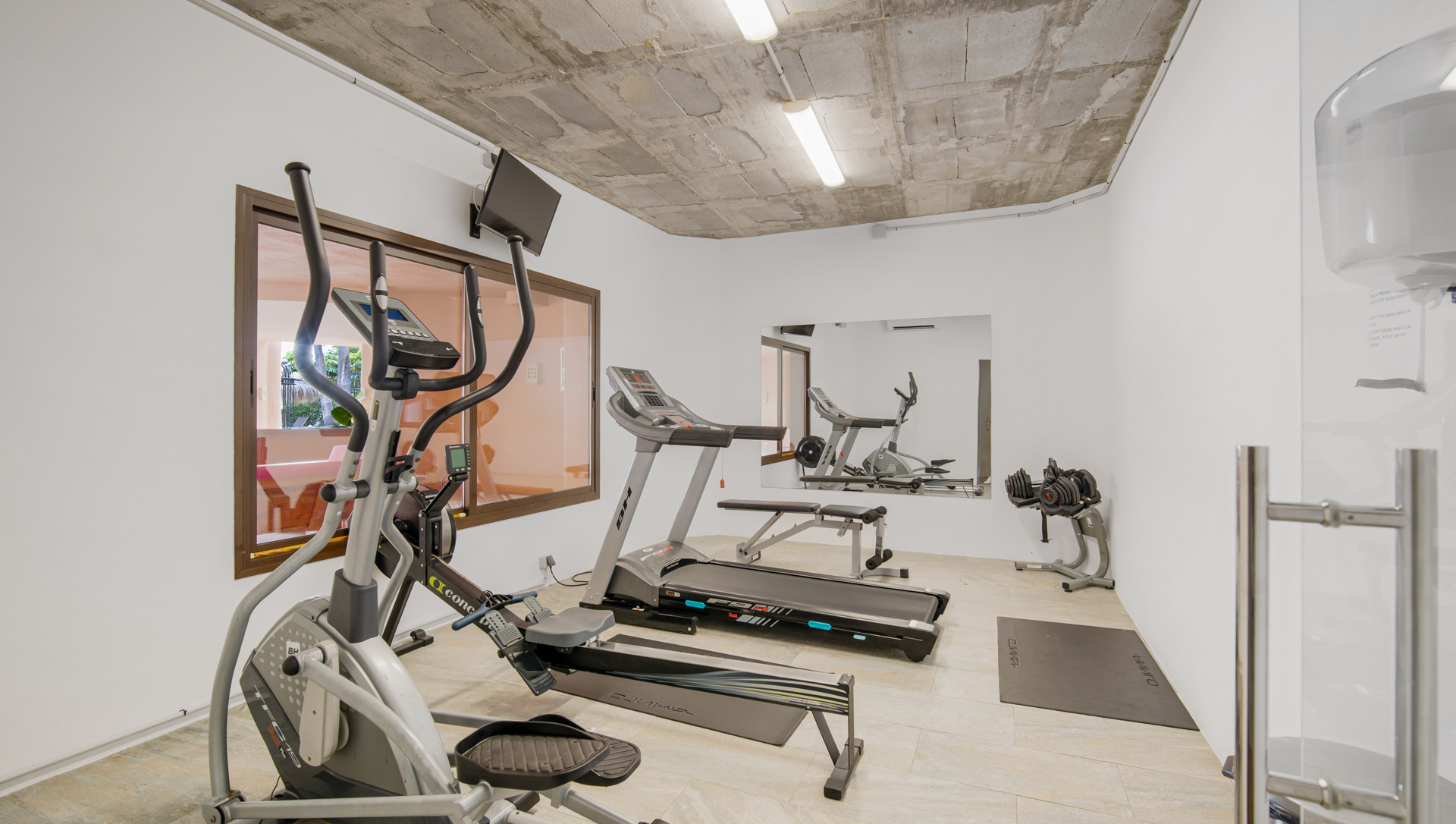 Tilbyder have, terrassemøbler, terrasse, vaskemaskine, grill, strygejern, pengeskab, internet (wifi), hårtørrer, fitnesscenter, centralvarme, aircondition, swimming pool fælles, garage til den samme bygning, TV.