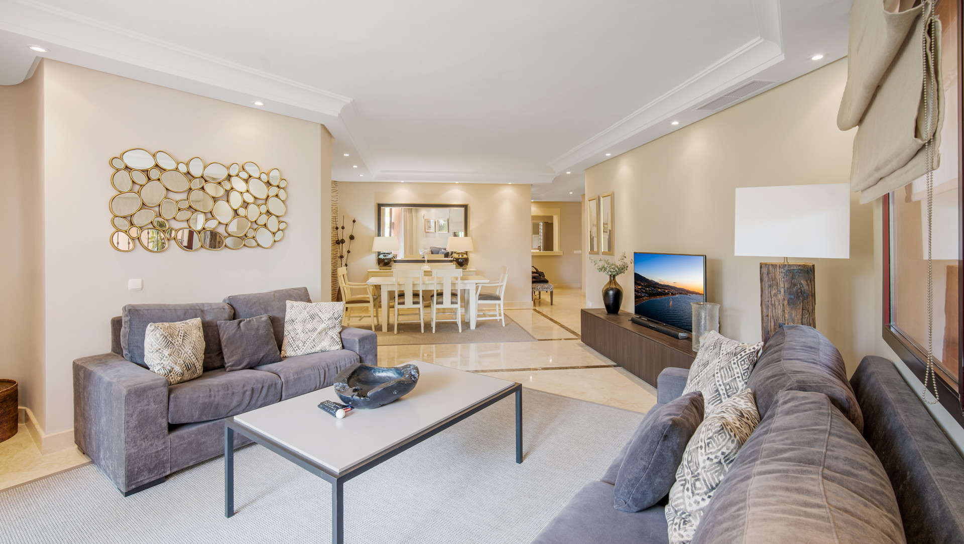 Gran Marbella Seafront Residence har en førsteklasses beliggenhed, da komplekset tilbyder direkte adgang til den maleriske paseo, en charmerende promenade, der fører direkte til stranden. Uanset om du er i humør til en afslappet spadseretur langs kysten eller en forfriskende dukkert i havet, er bekvemmeligheden ved strandliv lige uden for døren.