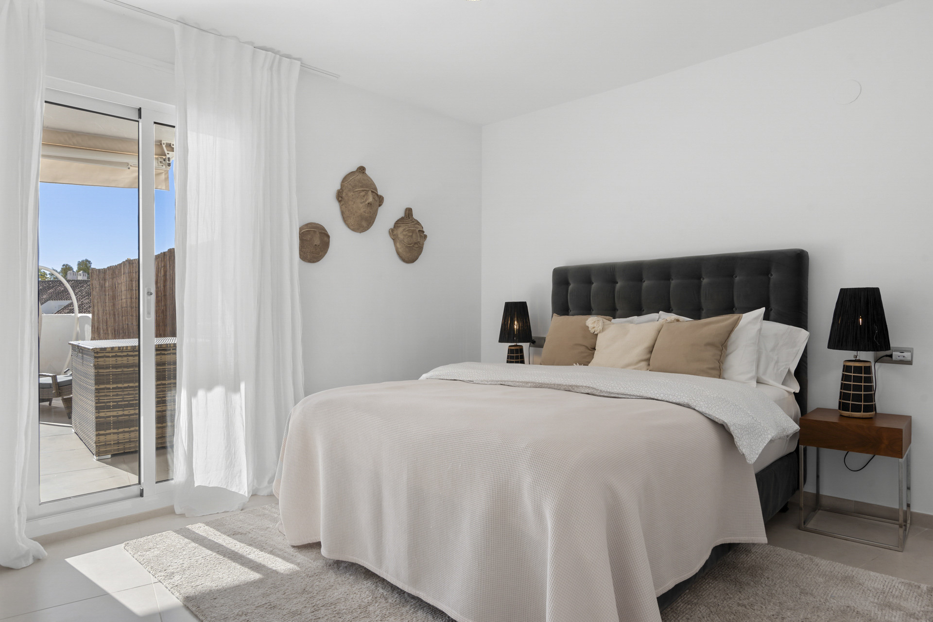 Højdepunktet i denne fantastiske bolig er dens private terrasse, hvor du kan slappe af og nyde middelhavets solskin, mens du nyder en betagende udsigt over de fælles haver, mousserende swimmingpool og det azurblå vand i Middelhavet.