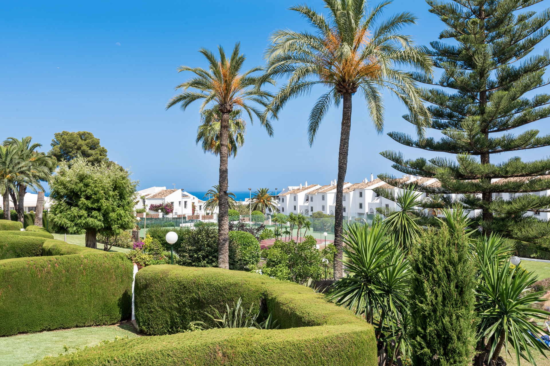 Højdepunktet i denne fantastiske bolig er dens private terrasse, hvor du kan slappe af og nyde middelhavets solskin, mens du nyder en betagende udsigt over de fælles haver, mousserende swimmingpool og det azurblå vand i Middelhavet.