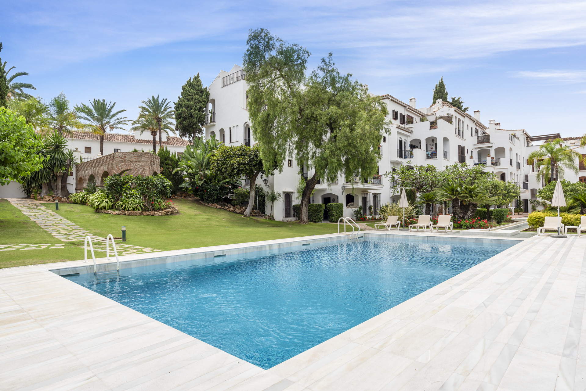 Placeret blot et kort spadseretog fra Puente Romano, The Forum og stranden, har denne lejlighed en af Marbellas mest eftertragtede beliggenheder. Nyd verdensklasse restauranter, shopping og strandklubber lige uden for døren, mens du kommer hjem til en fredelig, landsbylignende oase - dette er Golden Mile-liv i sin fineste form.