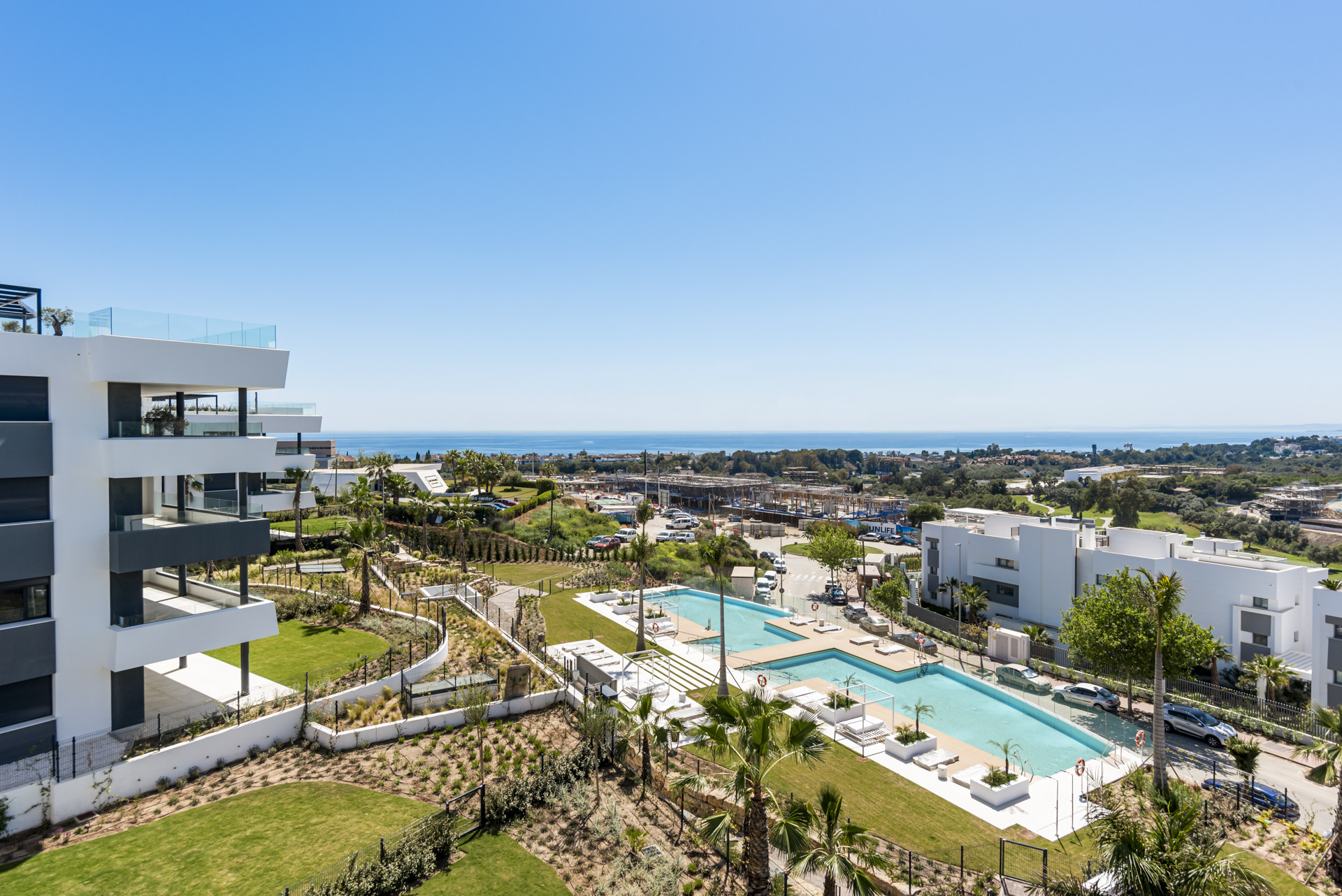 Højdepunktet i denne fantastiske bolig er dens private terrasse, hvor du kan slappe af og nyde middelhavets solskin, mens du nyder en betagende udsigt over de fælles haver, mousserende swimmingpool og det azurblå vand i Middelhavet.