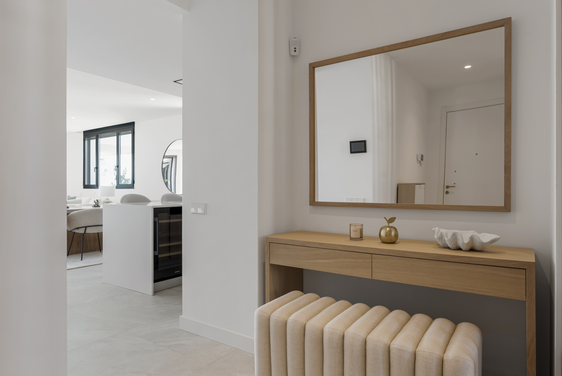Når du træder ind i lejligheden, bliver du mødt af en atmosfære af beroligende komfort. Lejligheden har en rummelig indretning med friske farver, møbler og indretning, hvilket skaber en stilfuld, men indbydende atmosfære.