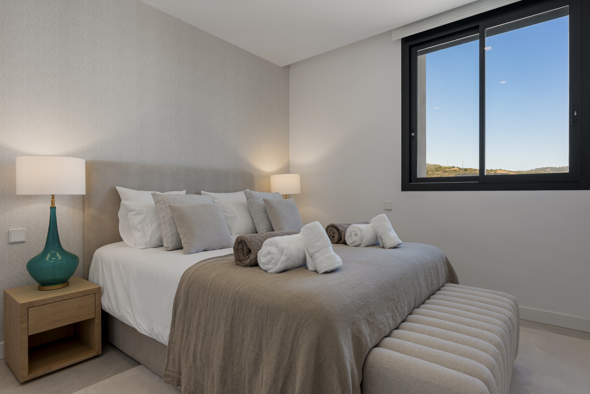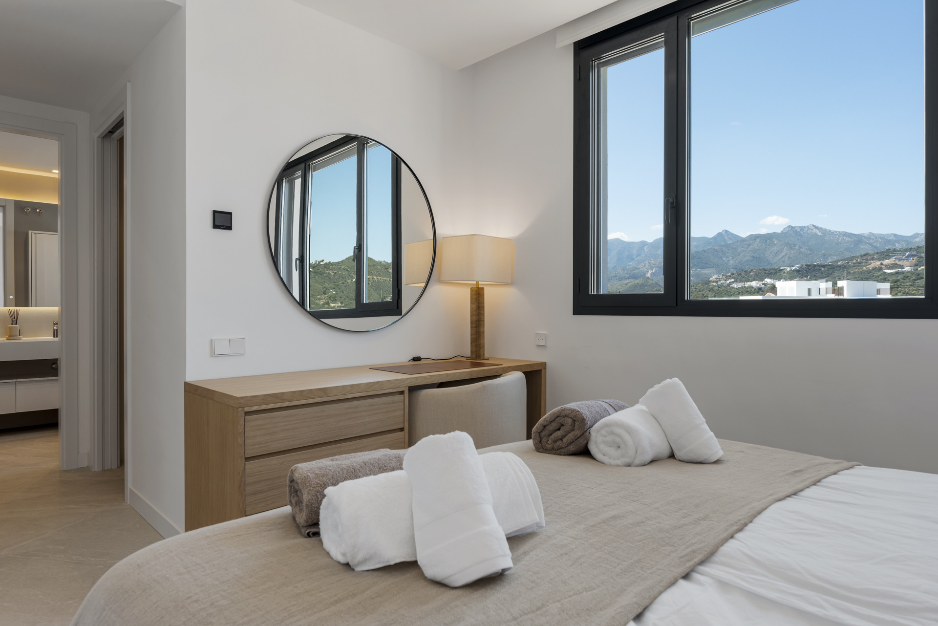 Soveværelset har et tilstødende badeværelse, der giver rigelig komfort, mens de to ekstra soveværelser deler et badeværelse mellem sig, hvilket giver god plads til gæster eller besøgende. Hvert rum er omhyggeligt designet for at skabe en følelse af afslapning og forfinelse.
