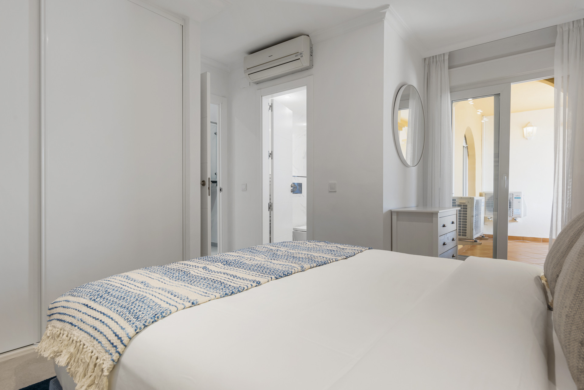 En af ejendommens fremtrædende egenskaber er den private tagterrasse, et rummeligt og solbeskinnende område udstyret med liggestole, en udendørs lounge og en grillopsætning - perfekt til afslapning, underholdning eller blot at nyde lange eftermiddage under Costa del Sol-himlen. Terrassen byder på både privatliv og panoramiske udsigter, hvilket skaber en atmosfære, der er svær at overgå.