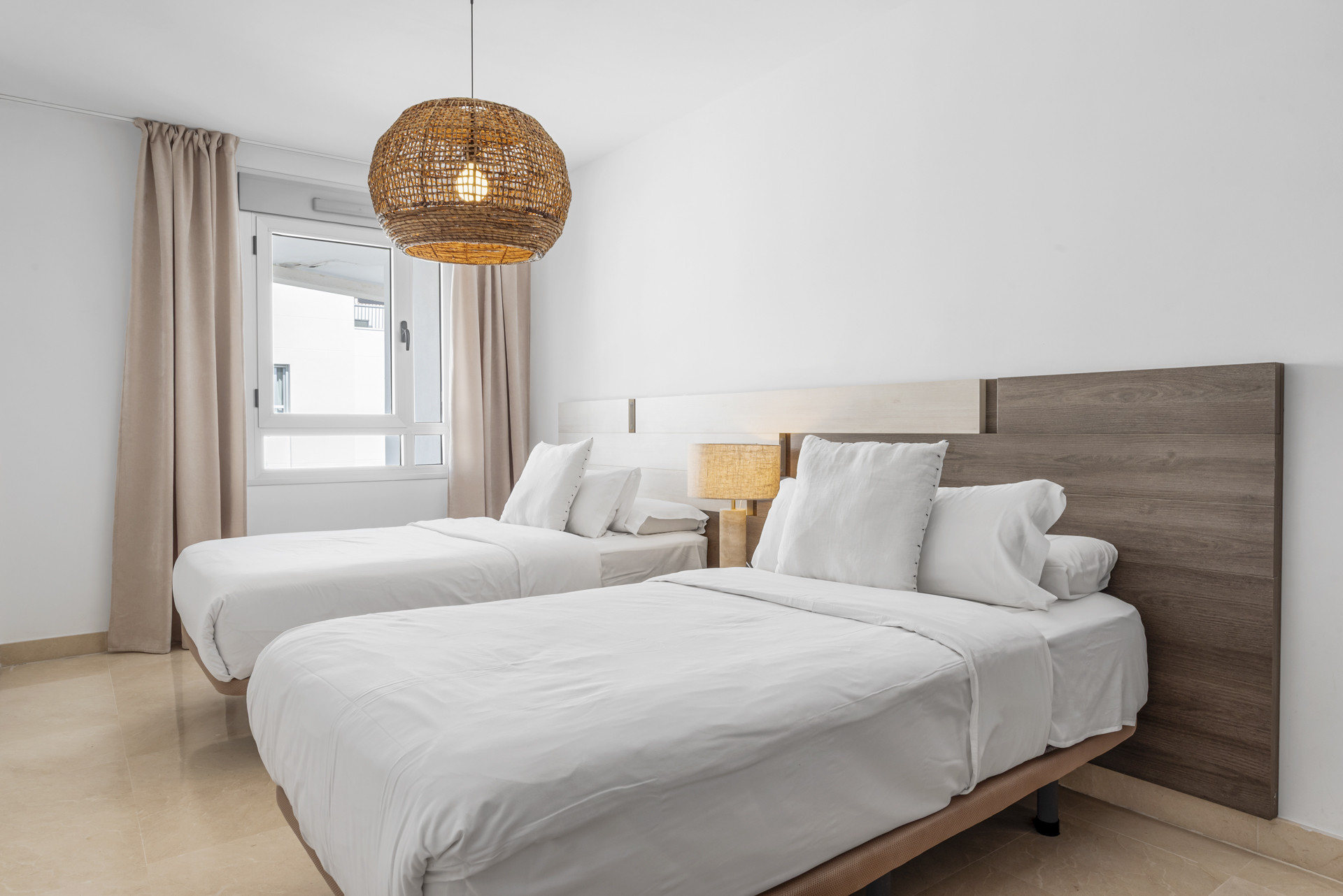 Perfekt placeret i hjertet af San Pedro de Alcántara, tilbyder denne stilfulde lejlighed den ultimative Costa del Sol livsstil med 3 soveværelser, 2 badeværelser og en ekstra fuld seng i et separat soveområde. Med stranden, restauranter, barer og butikker inden for en kort gåtur, er det den perfekte base for at nyde alt, hvad denne livlige by har at tilbyde.