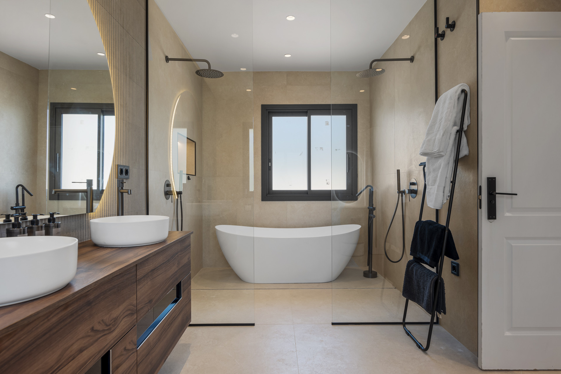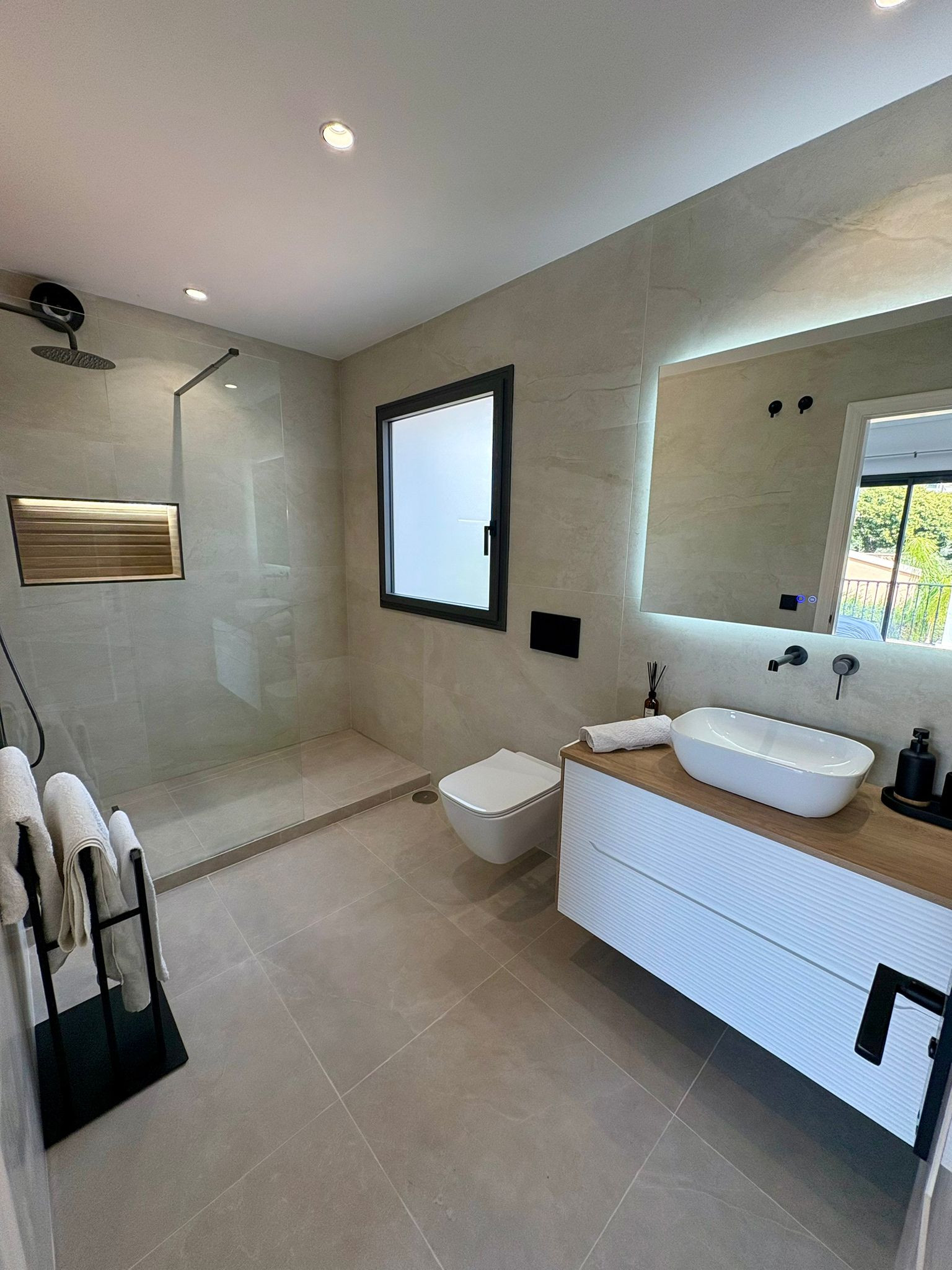 Yderligere faciliteter omfatter en træningsmaskine i kælderen, individuelle airconditionenheder i hvert rum, vægmonterede radiatorer til vintervelvære og højthastigheds-WiFi overalt. Gæster har også adgang til en padelbane inden for det sikrede, døgnbevogtede område.