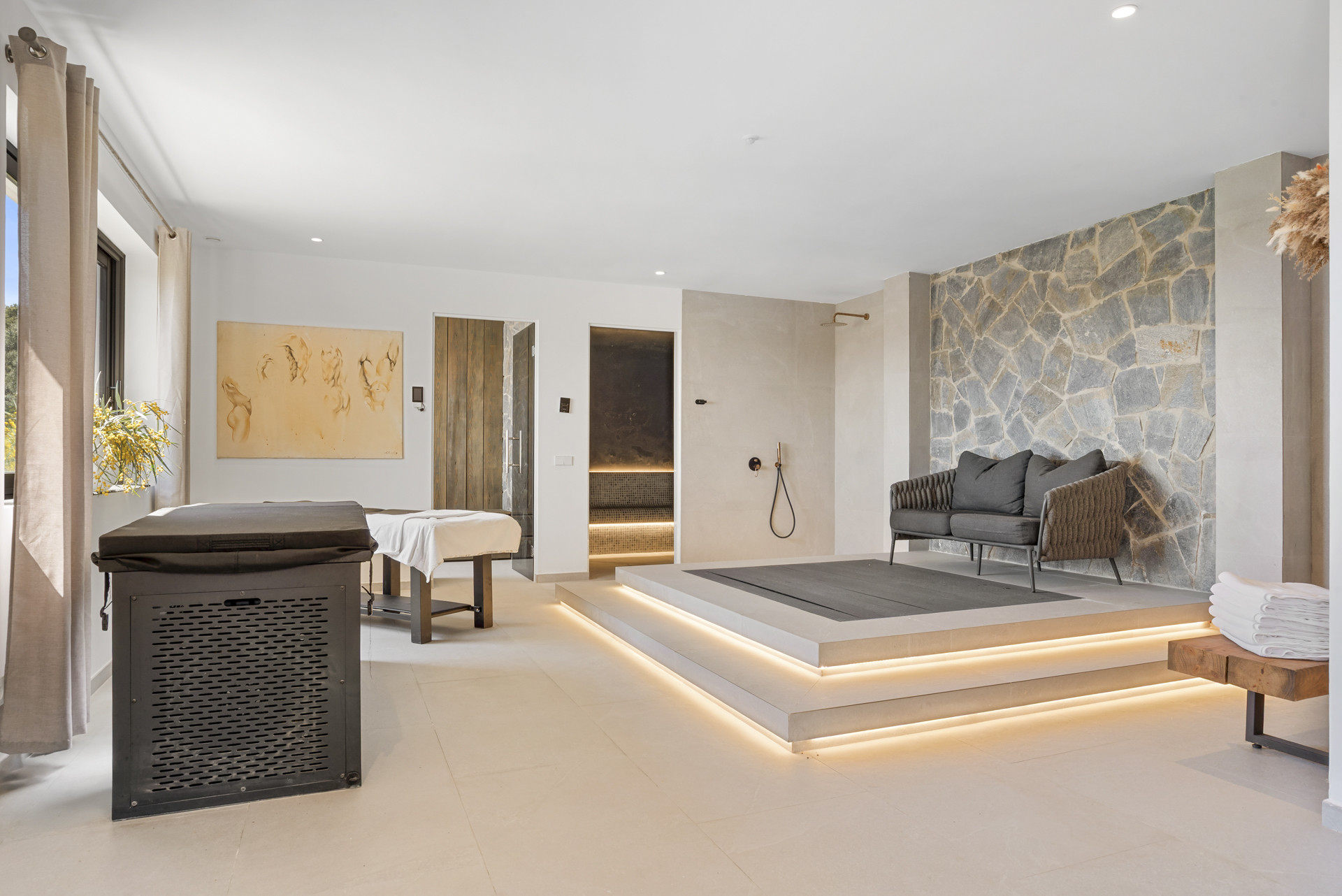Tilbyder indhegnet grund, terrasse, vaskemaskine, tørretumbler, grill, kamin, strygejern, pengeskab, internet (wifi), hårtørrer, altan, fitnesscenter, alarm, spa, centralvarme, aircondition, swimming pool privat, garage til den samme bygning, 2 Fjernsyn.