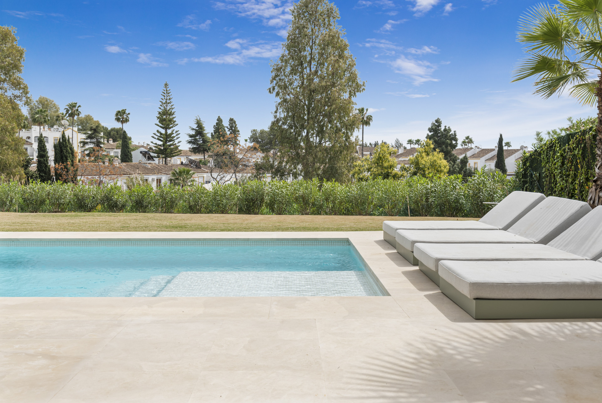 Outside Villa Lulu, a generously sized garden provides ample space for relaxation and recreation, while the option to heat the pool ensures year-round enjoyment (pool heating has an additional cost).