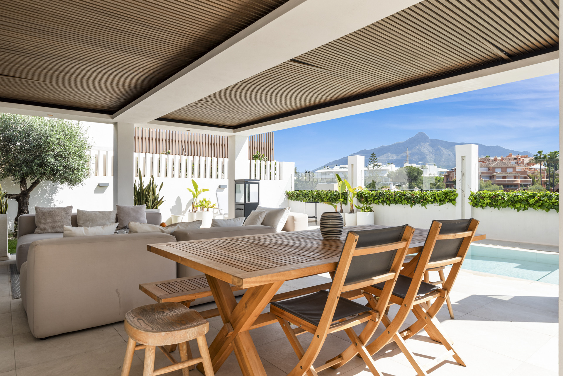 Velkommen til Villa Celeste, et stilfuldt og roligt feriehus med 4 soveværelser og 4 badeværelser, beliggende i hjertet af Marbella's Nueva Andalucía. Designet til familier og grupper, der søger både luksus og komfort, tilbyder denne villa rummelige opholdsarealer, eksklusive faciliteter og en uovertruffen beliggenhed blot få minutter fra stranden, golfbanerne og den levende atmosfære i Puerto Banús.