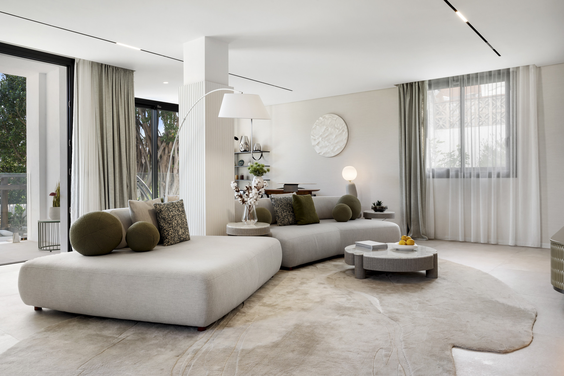 De primære opholdsrum er lyse og luftige, og forbinder elegant stuen, spisepladsen og det fuldt udstyrede moderne køkken. Villaen har fire strategisk placerede tv'er, herunder en storskærms-tv i biografrummet, en anden i spiseområdet og to yderligere tv'er i gæstesoveværelserne, hvilket sikrer, at underholdning altid er inden for rækkevidde.