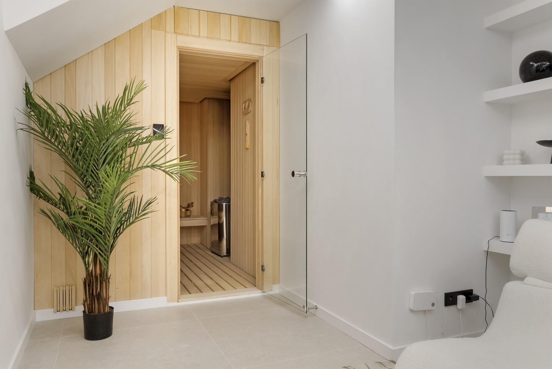 Indvendigt udfolder Villa Enso ubesværet elegance. Det åbne køkken flyder umærkeligt over i den primære opholdsstue og skaber et lyst og socialt hjerte i hjemmet - perfekt til fælles måltider og afslappede samtaler. Et separat TV/Biografrum ligger ved siden af det fuldt udstyrede fitnesscenter, begge på samme etage, hvilket giver alsidige rum til underholdning og velvære. Hvert soveværelse er omhyggeligt indrettet til hvile og privatliv, mens moderne detaljer og forfinede møbler løfter hvert et hjørne af hjemmet.