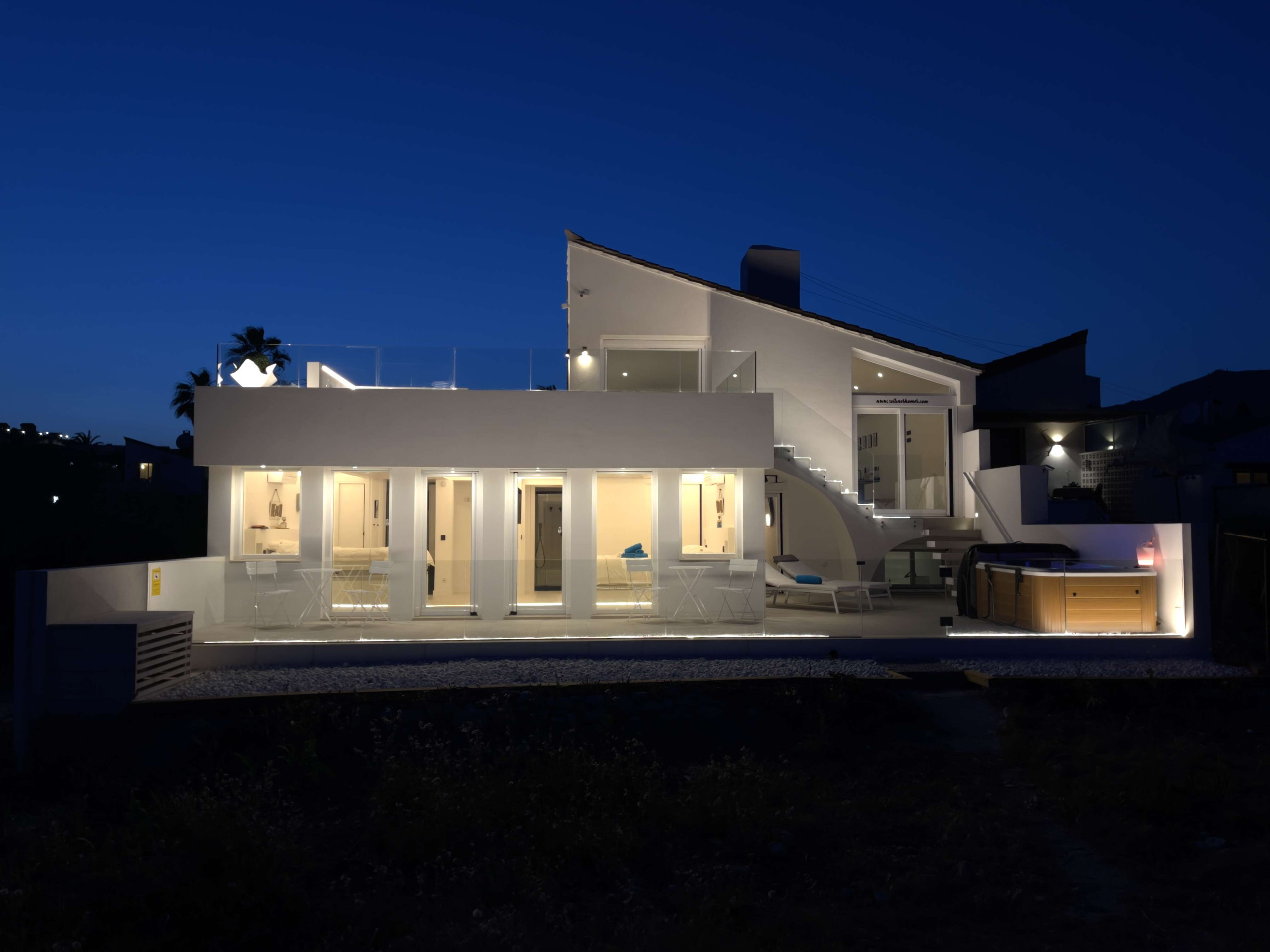 Treten Sie hinaus und genießen Sie die spektakuläre Umgebung. Im Erdgeschoss finden Sie eine geräumige Terrasse mit Außenmöbeln, ideal für den Morgenkaffee, zum Essen oder einfach zum Genießen der Ausblicke über das Mittelmeer. Die Terrasse im Obergeschoss bietet einen privateren Bereich zum Sonnenbaden mit bequemen Sonnenliegen, perfekt zum Entspannen unter der spanischen Sonne.