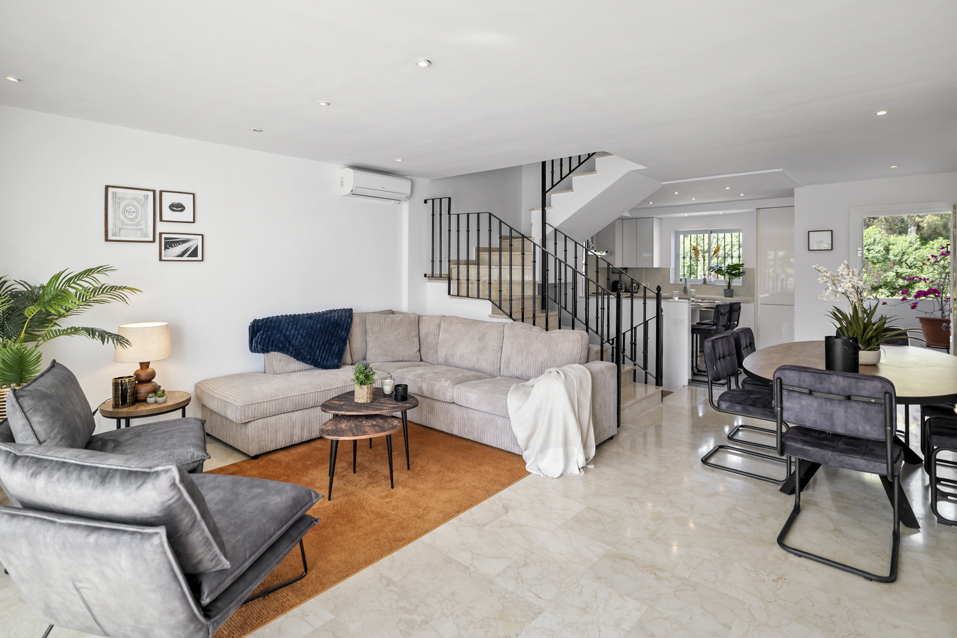 Entdecken Sie die perfekte Kombination aus modernem Komfort und mediterranem Lebensstil in diesem atemberaubenden Reihenhaus mit 4 Schlafzimmern und 3 Badezimmern in der exklusiven Urbanisation La Finca Marbella.