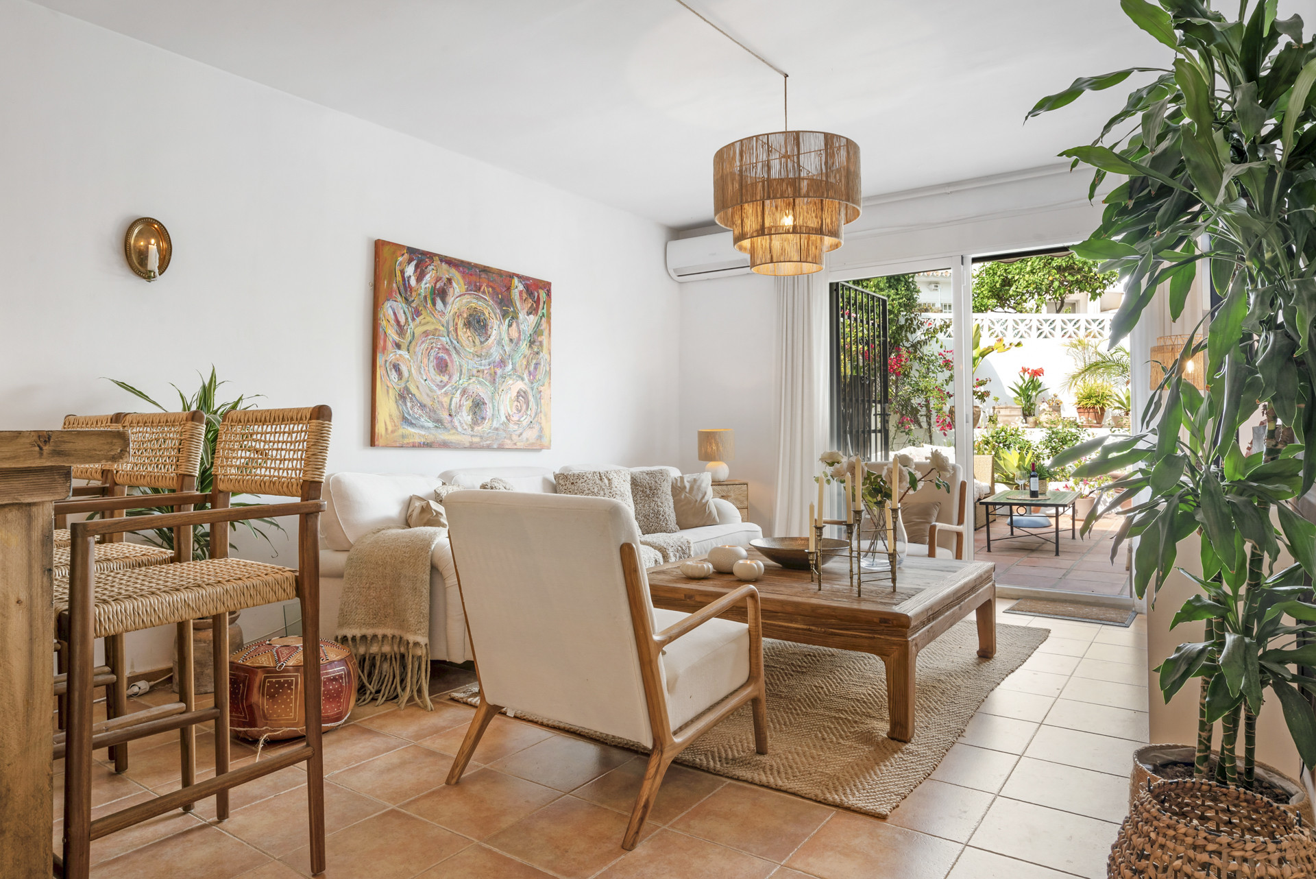 Willkommen im Monte Biarritz Townhouse, einem hellen und charmanten 3-Schlafzimmer-, 2-Badezimmer-Haus in einer friedlichen Gemeinschaft in Benahavís. Diese andalusische Immobilie verfügt über traditionelle weiß getünchte Außenfassaden, Terrakotta-Dachziegel und eine warme, einladende Atmosphäre. Im Inneren finden Sie gemütliche Wohnbereiche, eine vollständig ausgestattete Küche und durchdacht gestaltete Innenräume, die Komfort und Praktikabilität für einen entspannten Familienaufenthalt perfekt ausbalancieren.