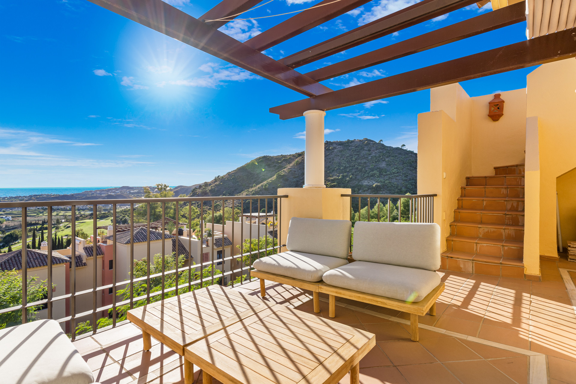 Penthouse Los Olmos ist ein atemberaubendes, neu renoviertes 3-Schlafzimmer-Penthouse in der begehrten Nachbarschaft von La Quinta mit unglaublichen Ausblicken auf La Concha und das Mittelmeer mit den nördlichen Küsten Afrikas im Hintergrund.