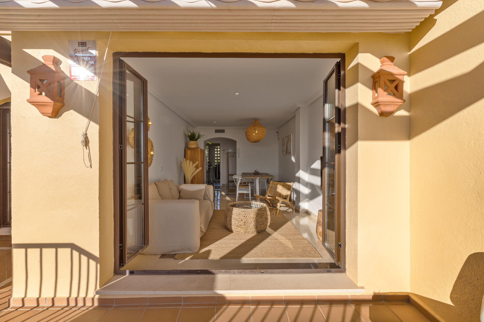 Alle Fenster und Türen sind mit sonnendurchlässigem Glas ausgestattet, um die Hitze fernzuhalten und die Möbel zu schützen.