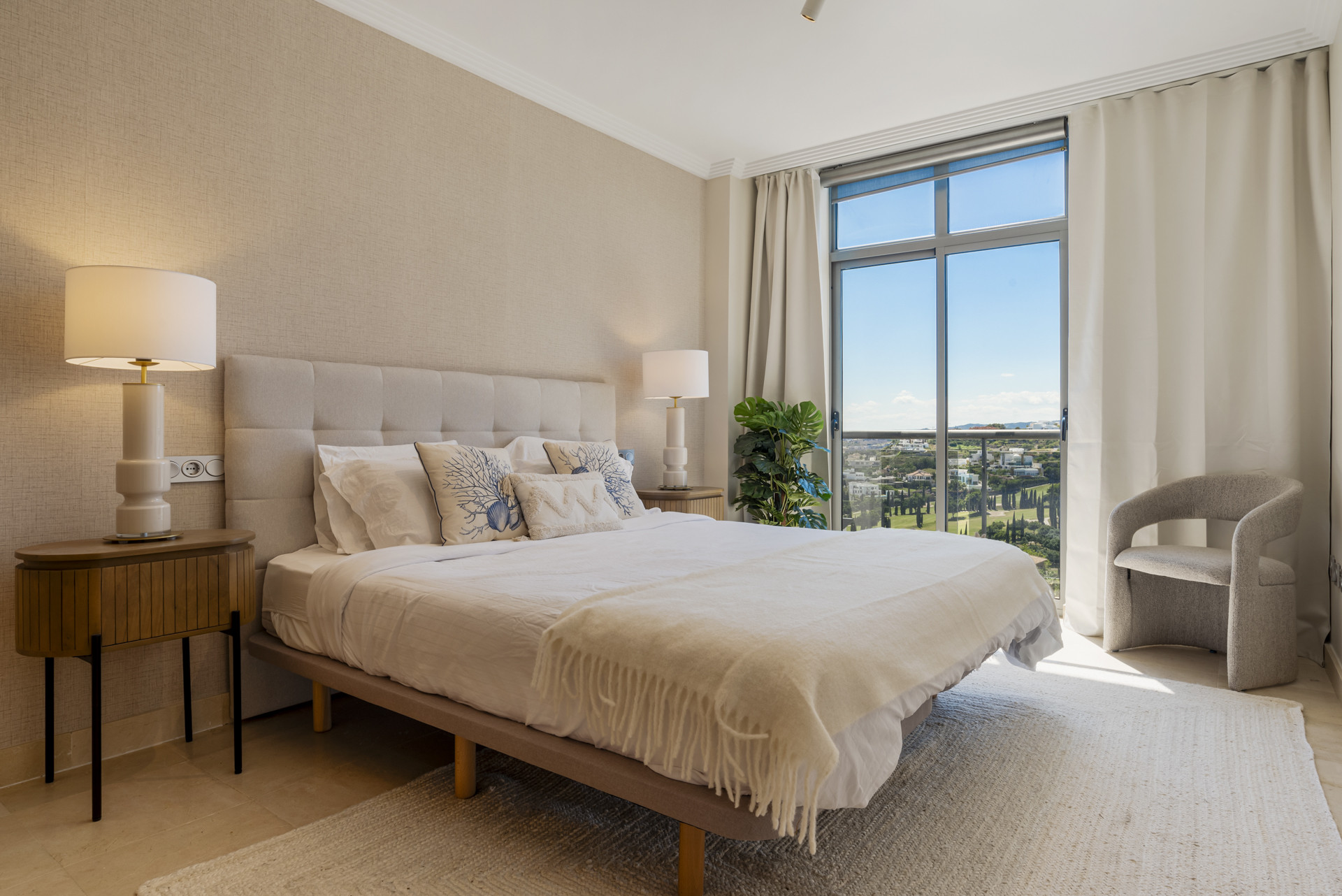 Die geräumige Wohnung befindet sich an der neuen Goldenen Meile zwischen Estepona und Marbella in der bekannten Wohnanlage Acosta Los Flamingos und gegenüber dem renommierten Hotel Villa Padierna, Benahavis.