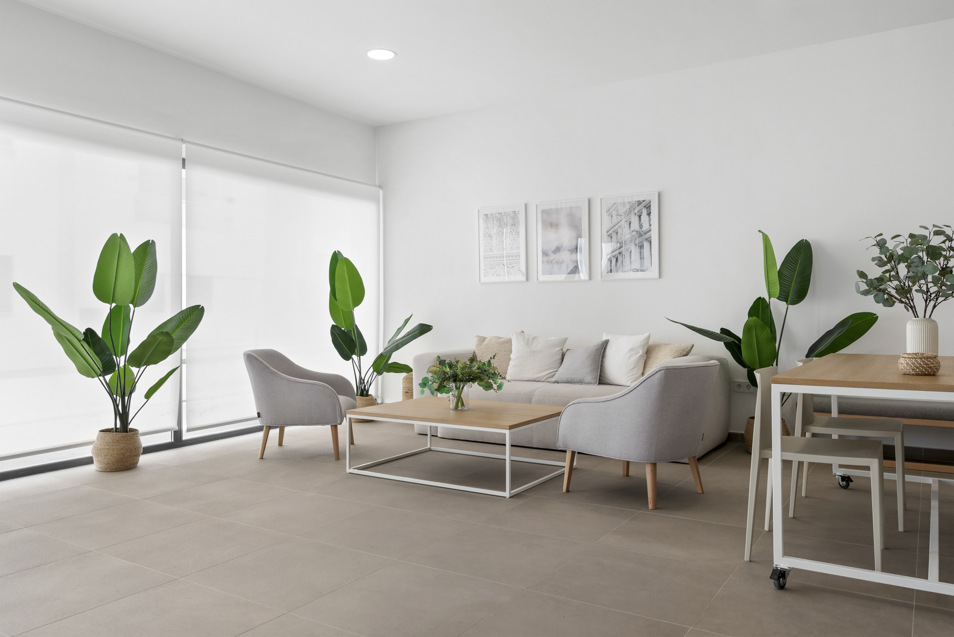 Treten Sie ein und lassen Sie sich von den geräumigen Innenräumen, die durch die großen Fenster von Boden bis zur Decke überflutet werden, faszinieren. Der offene Wohnbereich, die Küche und der Essbereich verschmelzen nahtlos miteinander und schaffen eine einladende Atmosphäre zum Entspannen und Unterhalten.