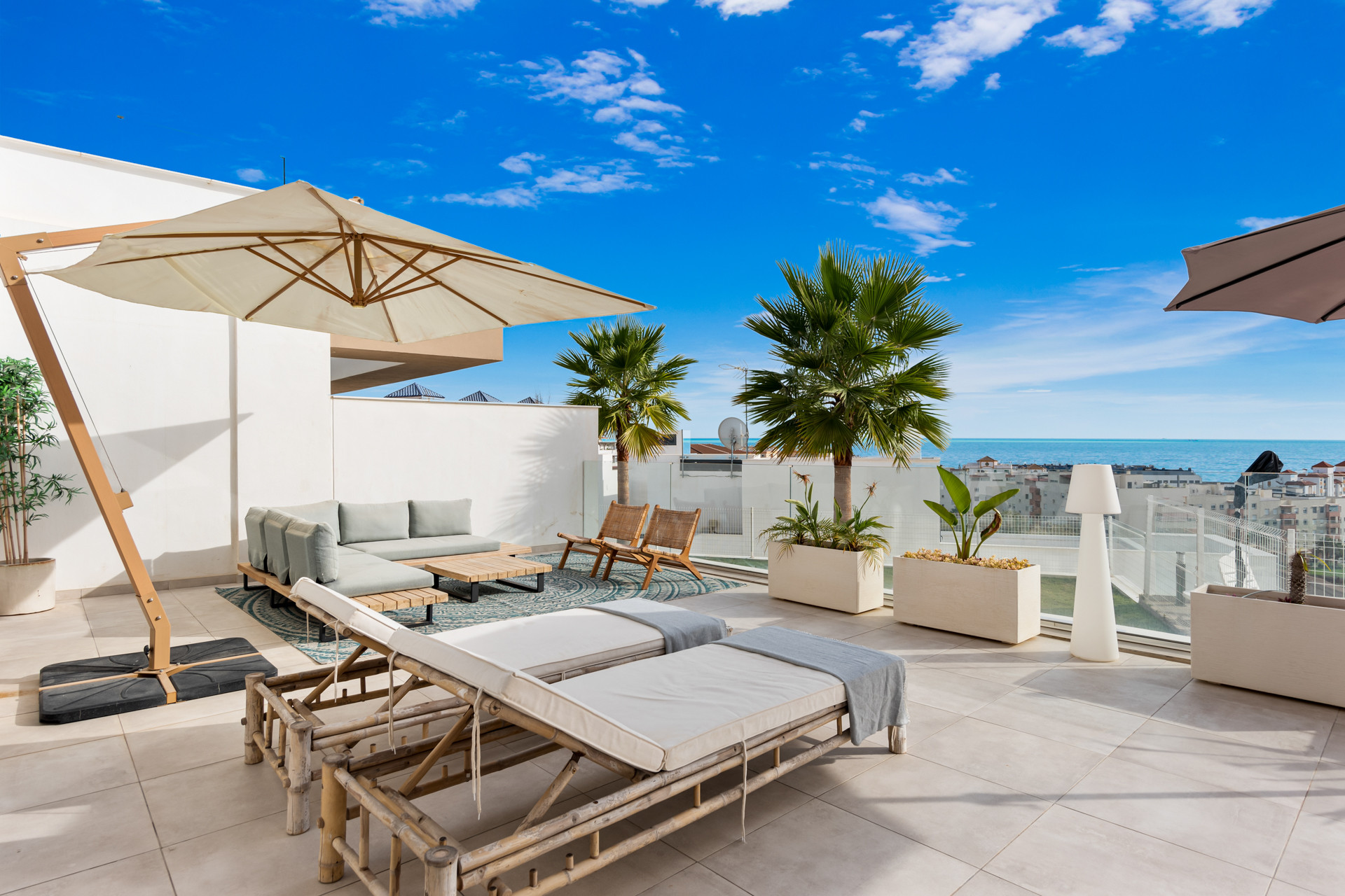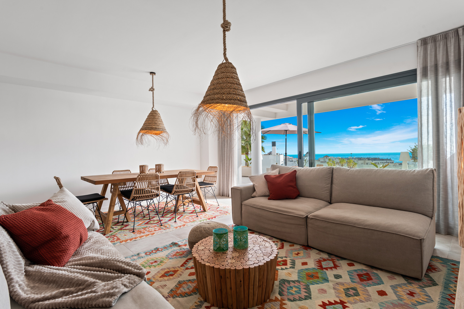 Wachen Sie auf zum Klang der Wellen und treten Sie direkt auf den goldenen Sand - diese außergewöhnliche Strandwohnung in Estepona bringt das Mittelmeer direkt vor Ihre Haustür.