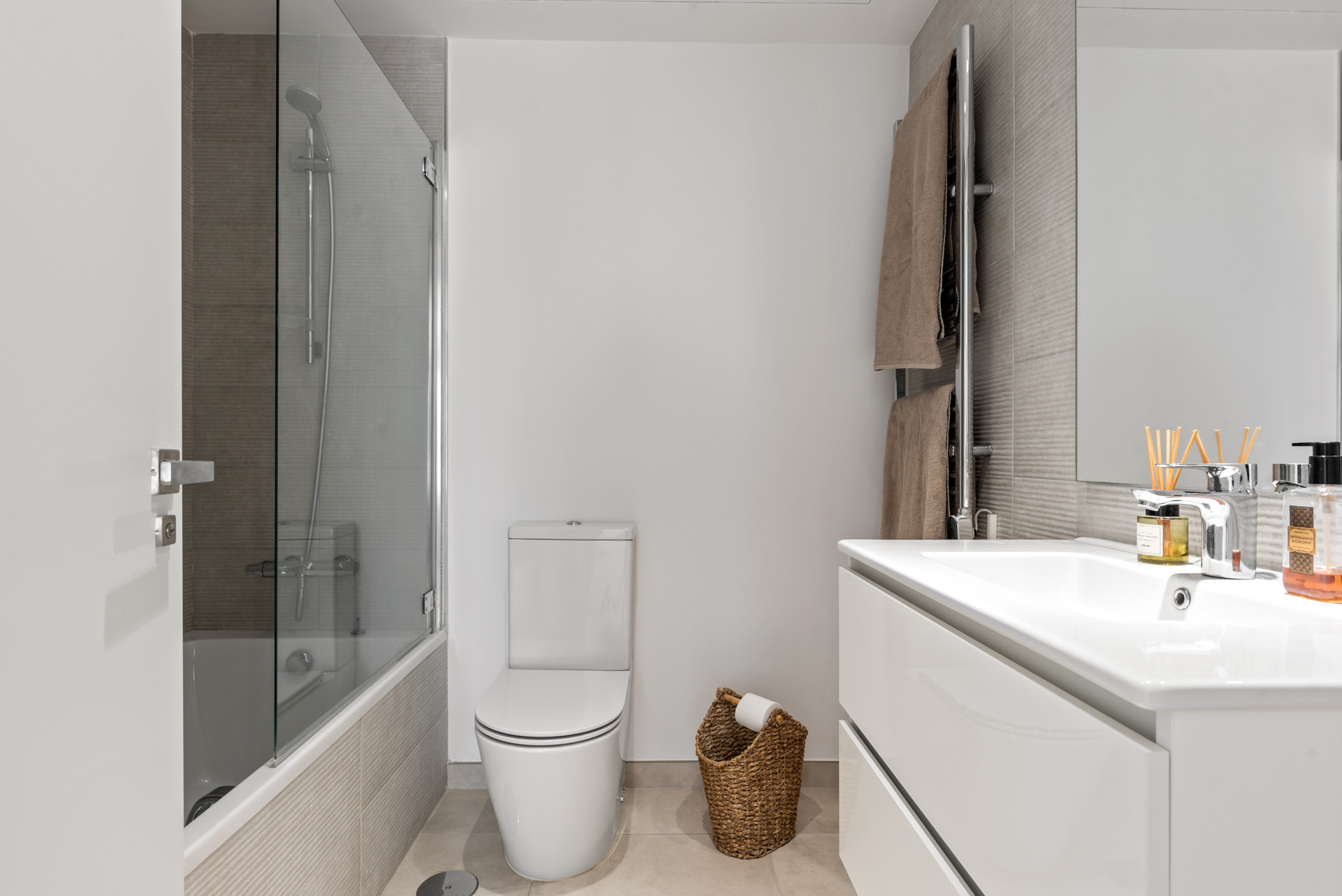 Auf 114 m² ist die Wohnung für müheloses Eleganz konzipiert. Der offene Wohnbereich verfügt über maßgefertigte Schreinerei, eine schlichte, vollausgestattete Küche und einen elektrischen Kamin, der eine warme und einladende Atmosphäre schafft. Ein zusätzlicher Bioethanol-Kamin auf der Terrasse ermöglicht es Ihnen, die Meeresbrise in gemütlicher Geborgenheit zu genießen, unabhängig von der Jahreszeit. Bodentiefe Glastüren rahmen die atemberaubenden Panoramaausblicke und verbinden das Innen- und Außenleben nahtlos.