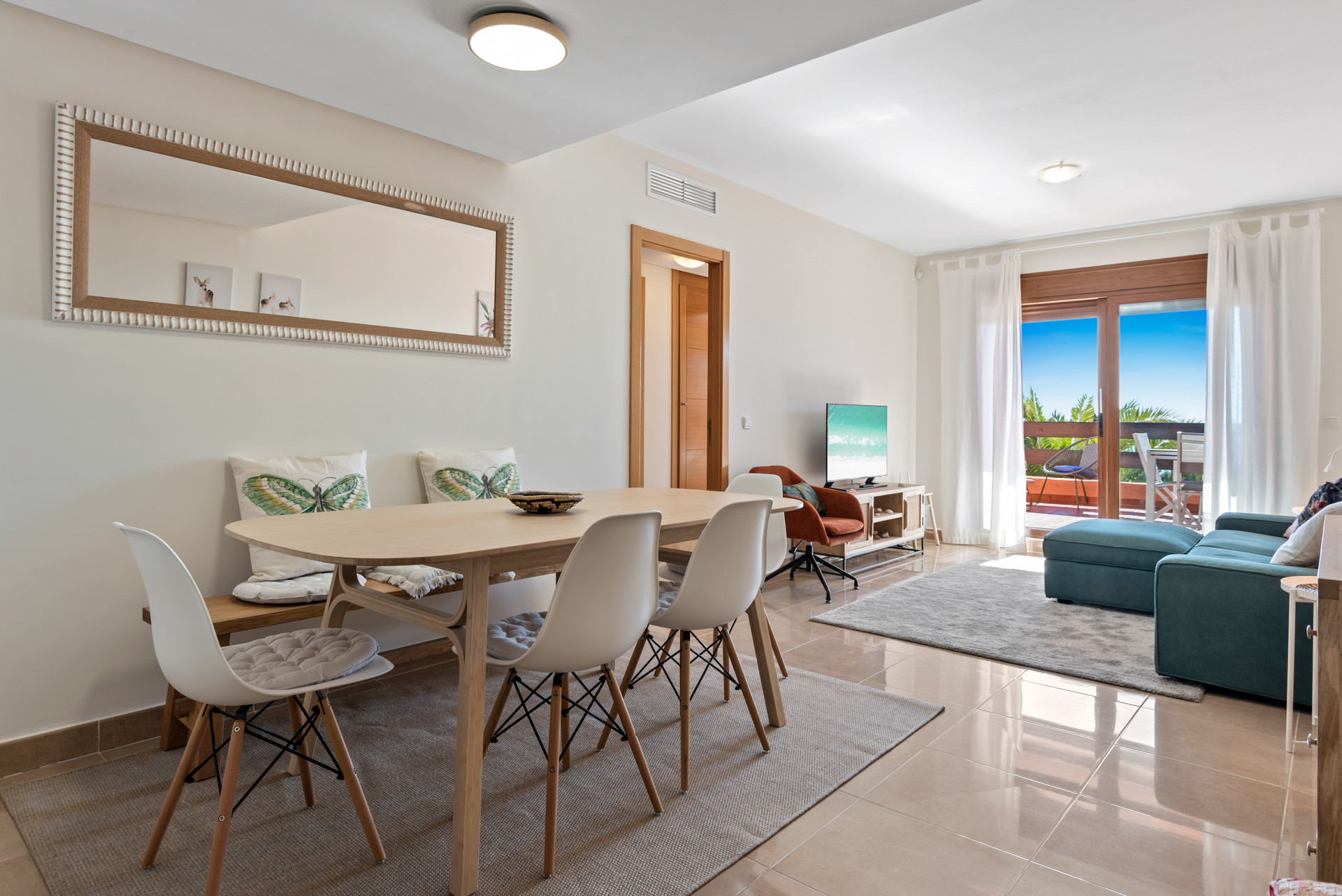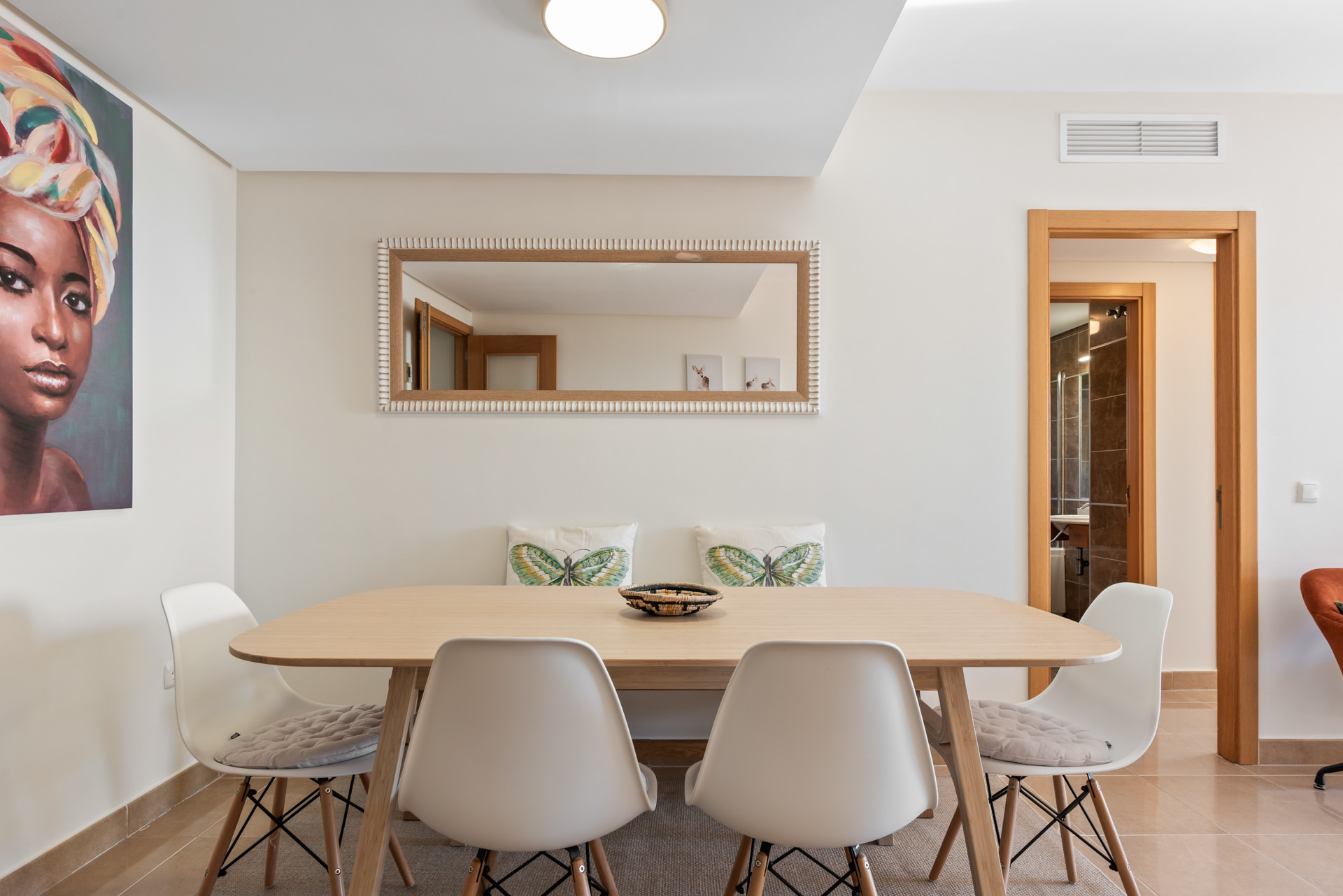 Treten Sie ein und lassen Sie sich von den geräumigen Innenräumen, die durch die großen Fenster von Boden bis zur Decke überflutet werden, faszinieren. Der offene Wohnbereich, die Küche und der Essbereich verschmelzen nahtlos miteinander und schaffen eine einladende Atmosphäre zum Entspannen und Unterhalten.