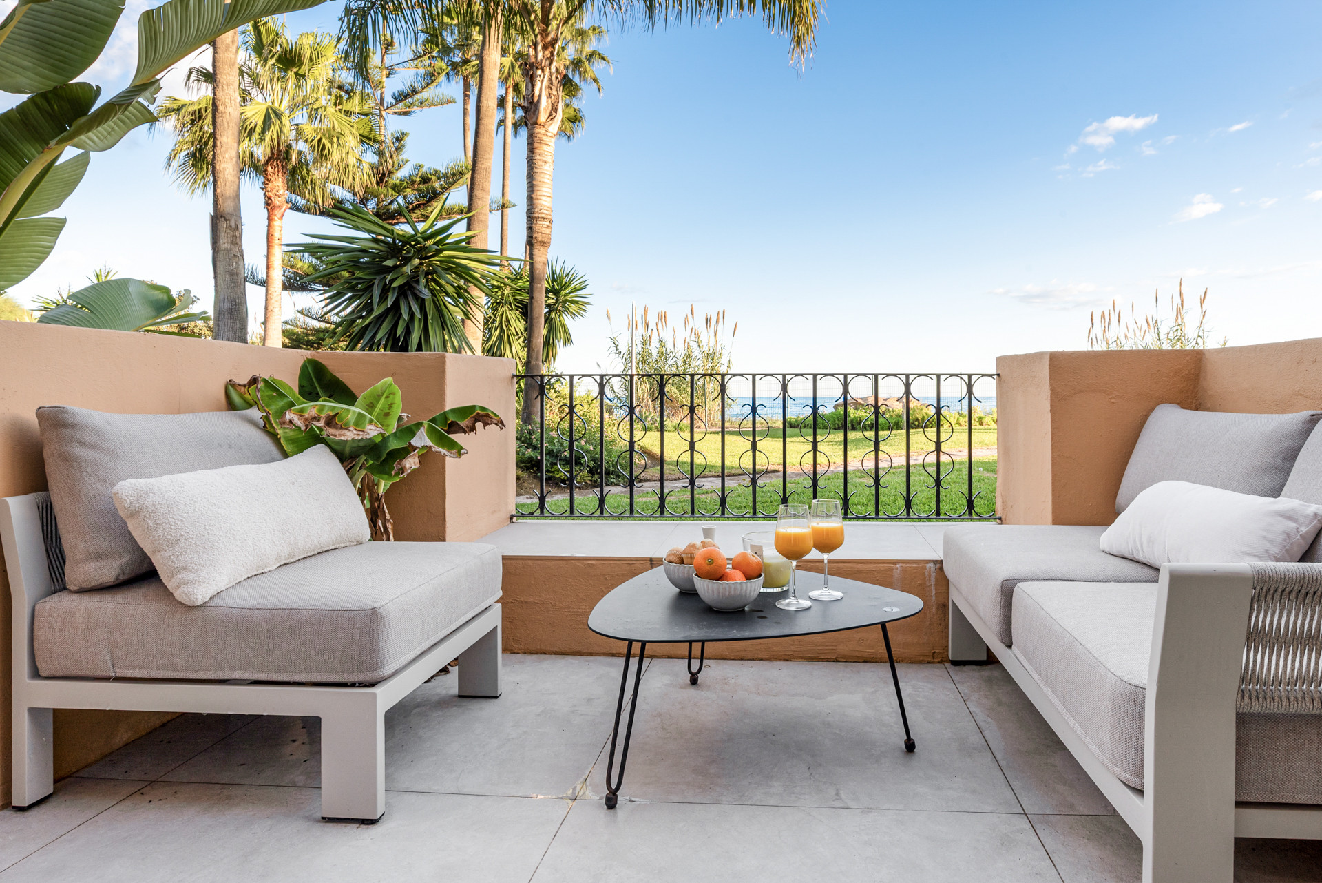 Wachen Sie auf zum Klang der Wellen und treten Sie direkt auf den goldenen Sand - diese außergewöhnliche Strandwohnung in Estepona bringt das Mittelmeer direkt vor Ihre Haustür.
