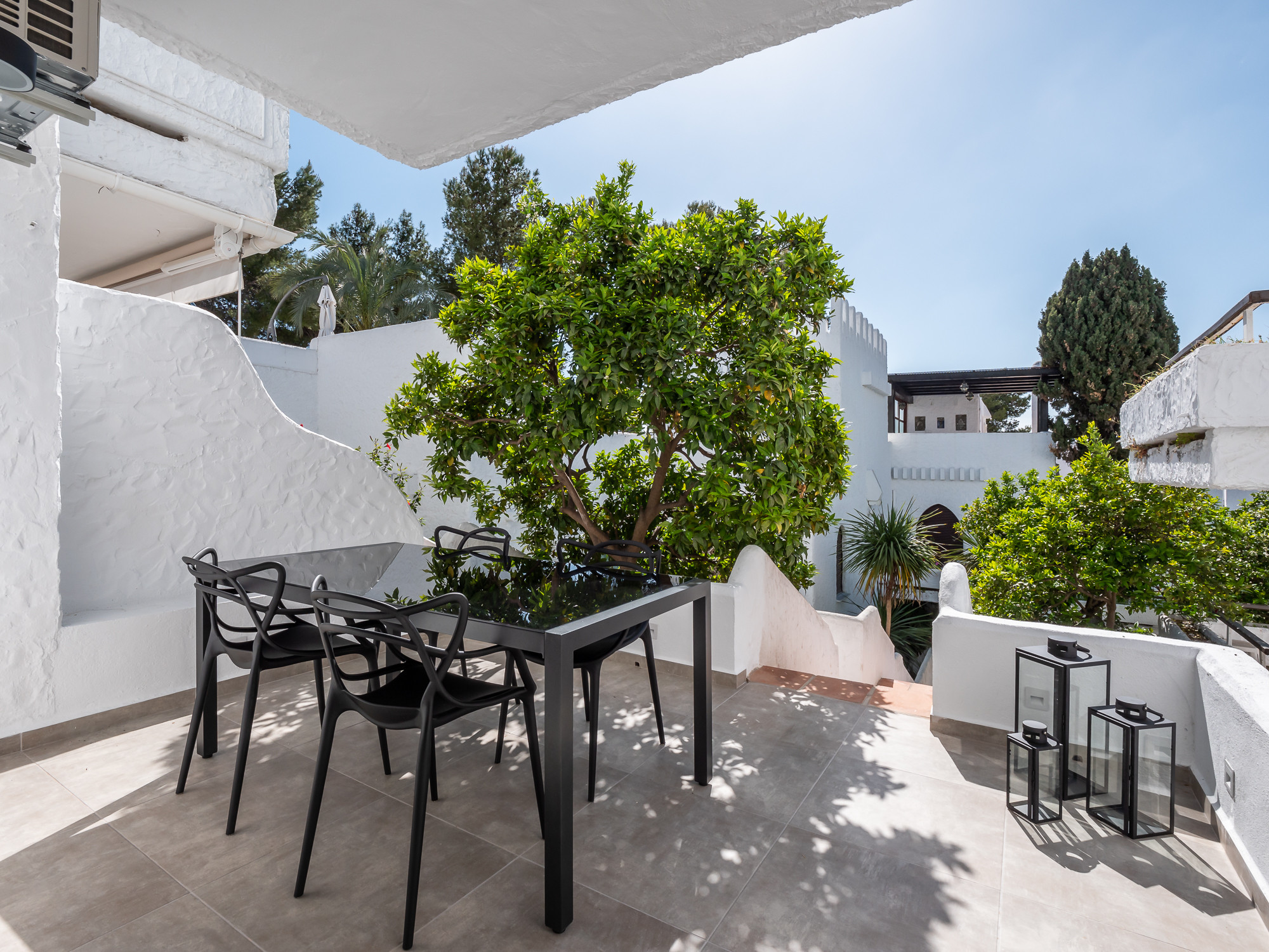 Die großzügige private Terrasse ist ein wahres Highlight und bietet von ihrer erhöhten Position aus wunderschöne Sonnenuntergangs- und Meeresblicke. Mit Dining- und Lounge-Bereichen bietet sie den perfekten Rahmen für entspannte Abende und Outdoor-Unterhaltung. Aldea Blanca ist bekannt für seine üppigen, landschaftlich gestalteten Gärten und die außergewöhnlich gut gepflegten Gemeinschaftspool-Bereiche, die eine friedliche Oase innerhalb eines sicheren Torbereichs schaffen. Ideal gelegen, befindet sich die Wohnung in bequemer Gehdistanz zu Puerto Banús, Geschäften, Restaurants und dem Strand und bietet gleichermaßen Bequemlichkeit und Lebensstil. Bitte beachten Sie, dass das Gebäude keinen Aufzug hat.