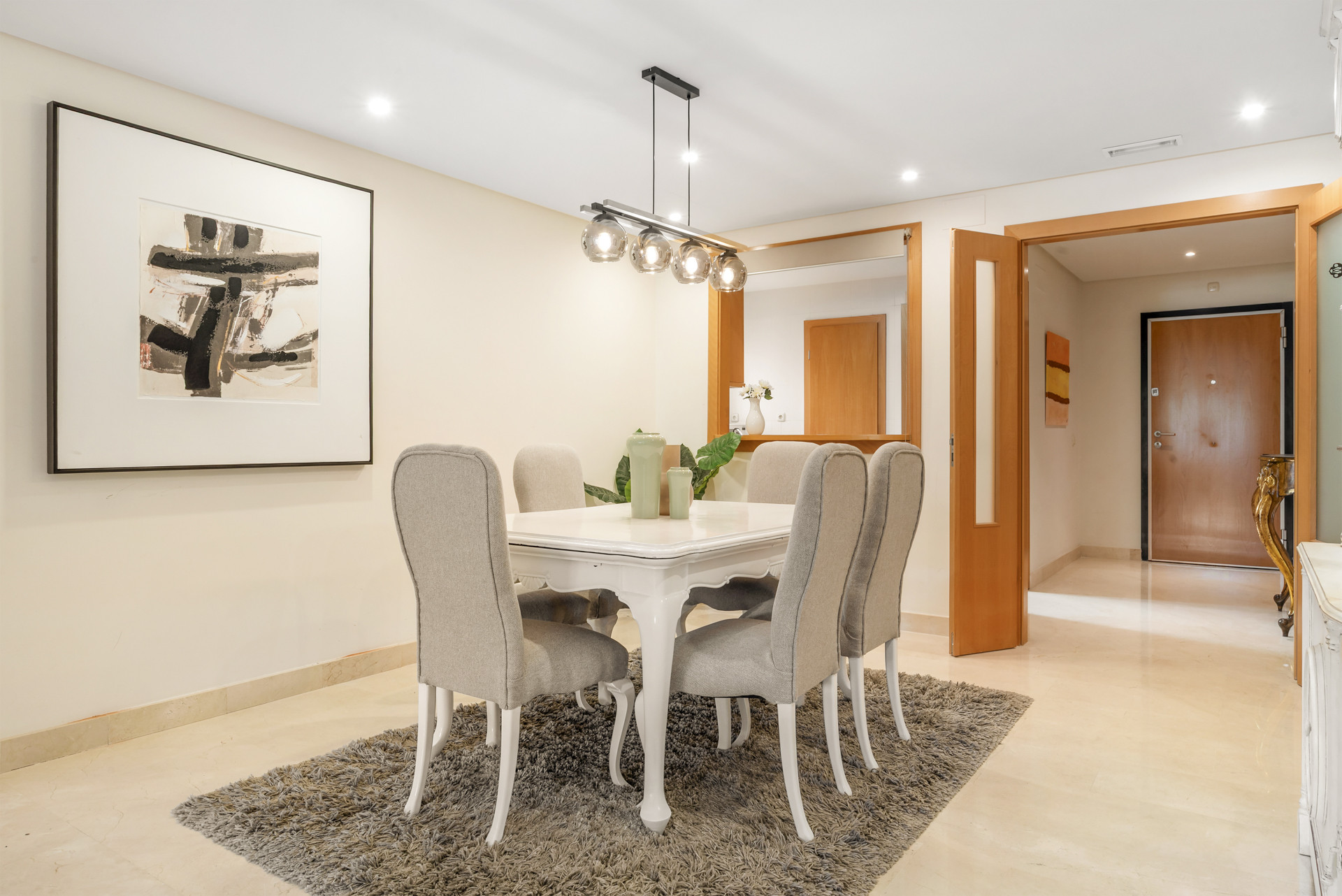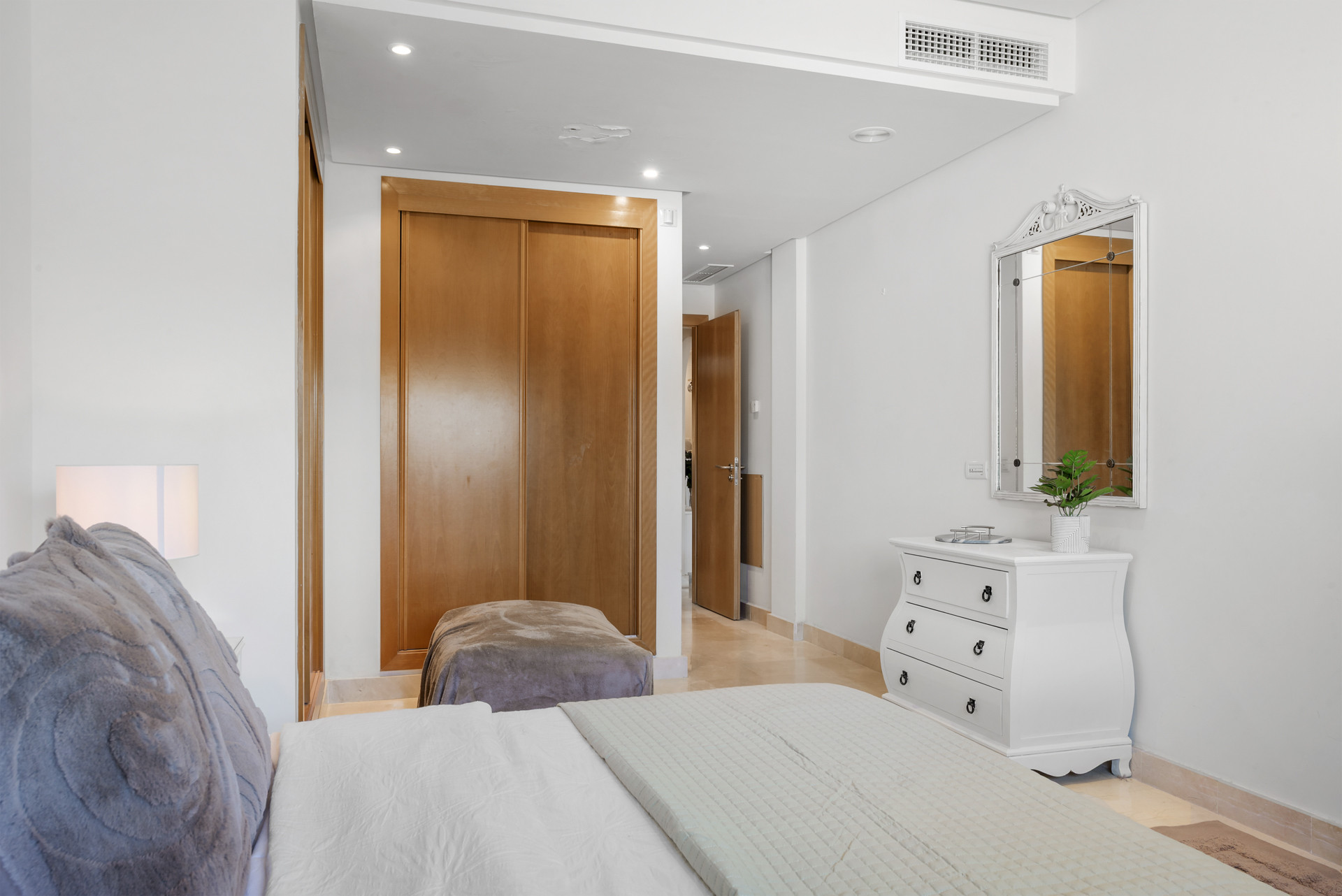 Willkommen in Casa Cielo! Casa Cielo ist eine wunderschön präsentierte 2-Zimmer-1-Bad-Wohnung in Aldea Blanca und bietet modernen Komfort in einer der begehrtesten Wohnanlangen in Nueva Andalucía. Die Wohnung verfügt über einen hellen, offenen Grundriss, in dem sich Wohn-, Ess- und Küchenbereiche nahtlos ineinander fügen und eine geräumige und gesellige Umgebung voller natürlichen Lichts schaffen. Große Schiebetüren aus Glas verbinden den Innenbereich direkt mit der Terrasse und verstärken das luftige Gefühl im gesamten Raum. Eines der Schlafzimmer fügt sich mühelos in den Wohnbereich ein und schafft einen flexiblen Raum, der als zusätzlicher Loungebereich oder Gästezimmer dienen kann und dabei die offene, zeitgenössische Ästhetik der Wohnung beibehält. Warme Holzböden und neutrale Töne verleihen dem Zuhause eine ruhige, moderne Atmosphäre.