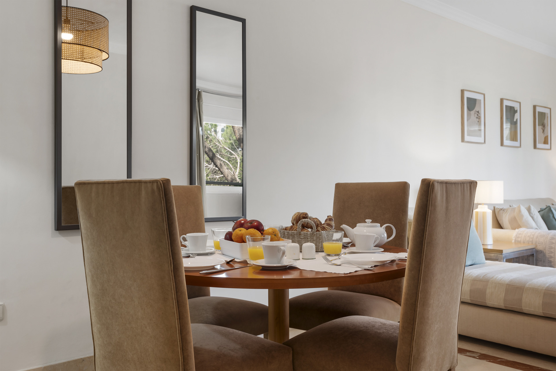 Willkommen in Casa Cielo! Casa Cielo ist eine wunderschön präsentierte 2-Zimmer-1-Bad-Wohnung in Aldea Blanca und bietet modernen Komfort in einer der begehrtesten Wohnanlangen in Nueva Andalucía. Die Wohnung verfügt über einen hellen, offenen Grundriss, in dem sich Wohn-, Ess- und Küchenbereiche nahtlos ineinander fügen und eine geräumige und gesellige Umgebung voller natürlichen Lichts schaffen. Große Schiebetüren aus Glas verbinden den Innenbereich direkt mit der Terrasse und verstärken das luftige Gefühl im gesamten Raum. Eines der Schlafzimmer fügt sich mühelos in den Wohnbereich ein und schafft einen flexiblen Raum, der als zusätzlicher Loungebereich oder Gästezimmer dienen kann und dabei die offene, zeitgenössische Ästhetik der Wohnung beibehält. Warme Holzböden und neutrale Töne verleihen dem Zuhause eine ruhige, moderne Atmosphäre.