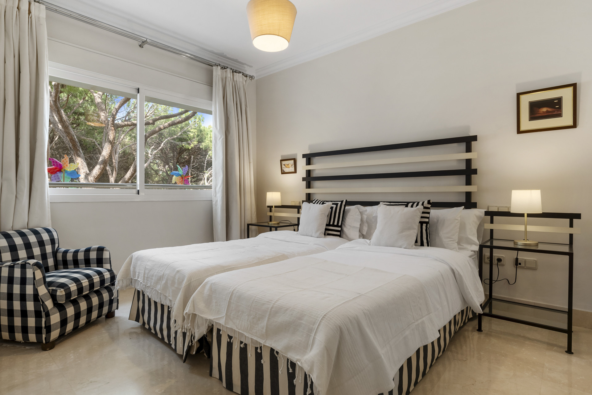 Die Wohnung verfügt über ein helles und elegantes Interieur mit stilvollem Mobiliar und reichlich natürlichem Licht. Der offene Wohn- und Essbereich verbindet sich nahtlos mit einer privaten Terrasse, ideal für Morgenkaffees oder Abendgetränke. Beide Schlafzimmer sind geräumig und geschmackvoll eingerichtet, während die Badezimmer modern und gut ausgestattet sind und Komfort und Bequemlichkeit bieten. Die vollständig ausgestattete Küche macht das Kochen zu Hause einfach, obwohl man mit Restaurants und Strandclubs von Weltklasse wie Puente Romano in Gehdistanz verwöhnt wird.