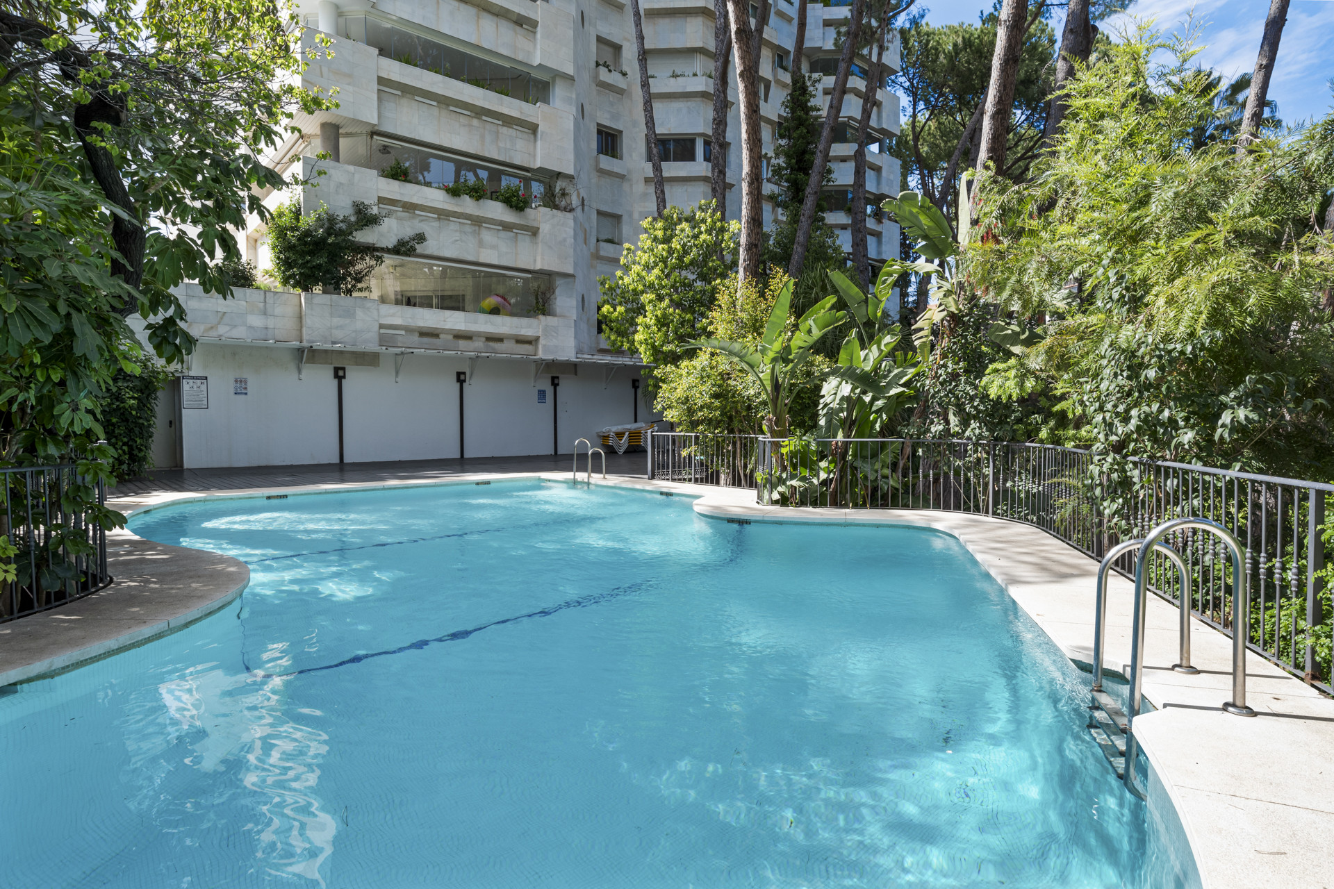 Willkommen in Jardines del Med, einer wunderschön präsentierten 2-Schlafzimmer-Wohnung mit 2 Badezimmern, die im Herzen von Marbellas prestigeträchtigem Golden Mile liegt. Eingebettet direkt hinter dem ikonischen 5-Sterne-Melia Hotel und nur wenige Schritte vom Strand entfernt, bietet diese Immobilie eine unschlagbare Lage, die Meeresstille mit dem lebendigen Lebensstil von Marbella kombiniert.