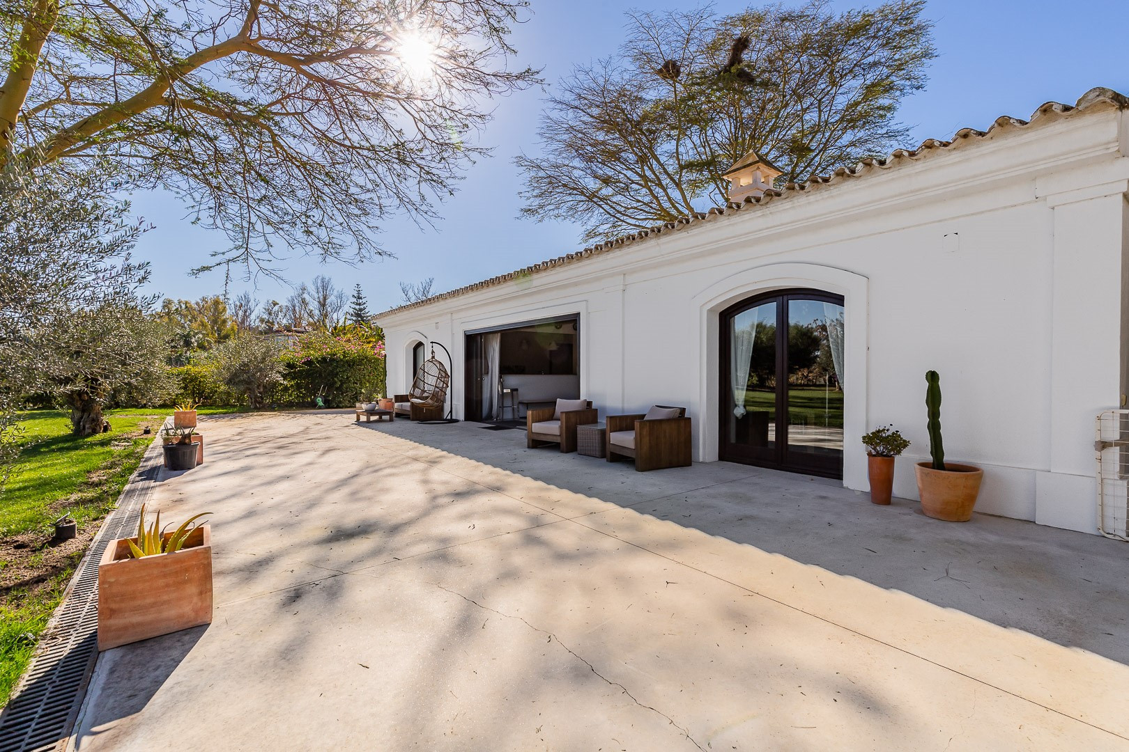 Die Unterkunft verfügt über einen Garten, Gartenmöbel, ein umzäuntes Grundstück, Terrasse 100 m², eine Waschmaschine, einen Trockner, ein Bügeleisen/-brett, ein Internetanschluss (WLAN), ein Föhn, ein Balkon, eine Zentralheizung, eine Klimaanlage in der ganzen Unterkunft, ein Privatpool, eine Garage und Parkplatz (4 Stellplätze) auf dem Grundstück, 1 Fernseher.