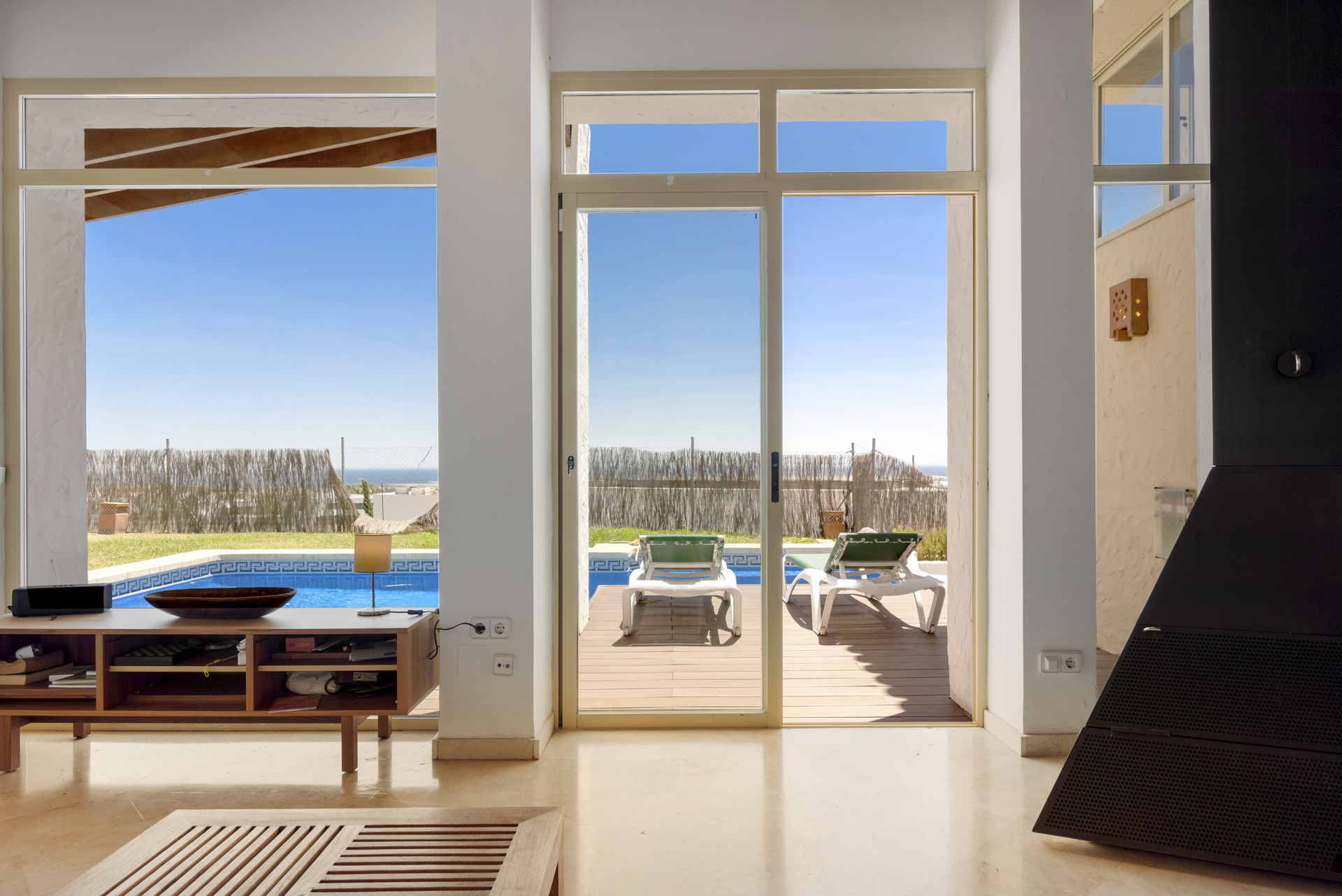 Mit klaren architektonischen Linien und durchgehenden Glasflächen gestaltet, ist die Villa von natürlichem Licht durchflutet und bietet ein nahtloses Indoor-Outdoor-Wohnerlebnis. Der Hauptwohnbereich ist offen und einladend und geht in eine vollständig ausgestattete moderne Küche und Essbereich über - perfekt zum Entspannen oder Unterhalten in zurückhaltender Luxusatmosphäre.