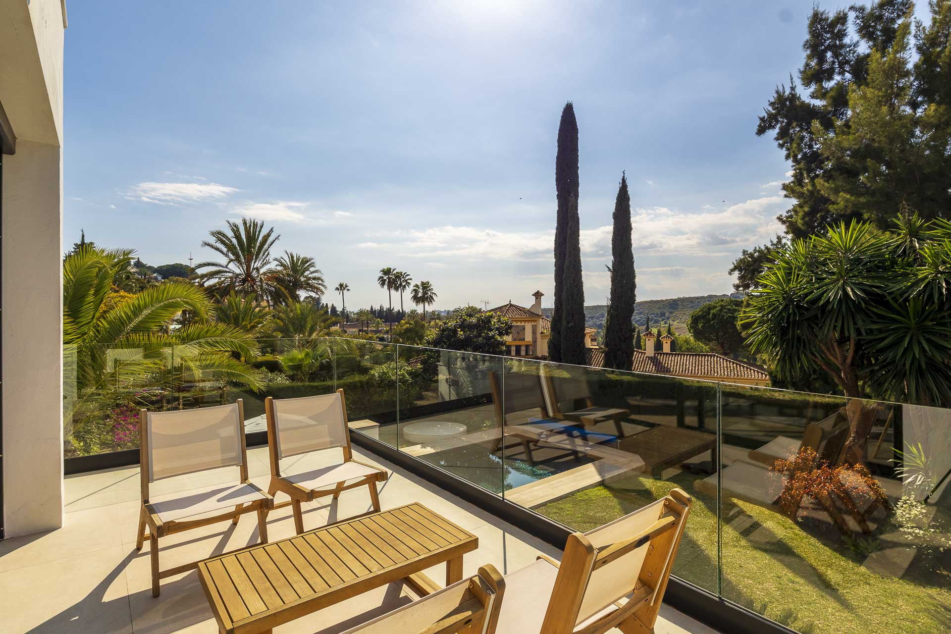 Die Villa in Estepona verfügt über 6 Schlafzimmer und hat eine Kapazität für 11 Person(en). Die geschmackvoll ausgestattet und moderne Unterkunft verfügt über 350 m² und verfügt über eine tolle Aussicht auf die Berge und den Garten. Die Unterkunft befindet sich 650 m vom Golfplatz entfernt, 2 km vom Supermarkt, 4 km vom zum Sandstrand, 4 km von der Bushaltestelle, 4 km vom , 4 km vom , 6 km vom , 9 km von der Stadt, 48 km vom Wasserpark, 71 km vom Flughafen, 71 km vom , in einer idealen Umgebung für Familien.Die Unterkunft verfügt über einen Garten, Gartenmöbel, ein umzäuntes Grundstück, Terrasse 240 m², eine Waschmaschine, einen Trockner, einen Grillplatz, einen Kamin, ein Bügeleisen/-brett, ein Internetanschluss (WLAN), ein Föhn, ein Fitnessraum, eine Zentralheizung, eine Klimaanlage in der ganzen Unterkunft, ein Privatpool, einen klimatisierter Privatpool, einen Parkplatz im Freien (3 Stellplätze) auf dem Grundstück, ein Fernsehgeräte.Die Offene Küche mit Induktions-Kochfeld ist ausgestattet in einen Kühlschrank, eine Mikrowelle, ein Backofen, Gefrierschrank, eine Spülmaschine, Geschirr/Besteck, Kochutensilien, eine Kaffeemaschine, einen Toaster, einen Wasserkocher, eine Saftpresse und Küchengeschirr.