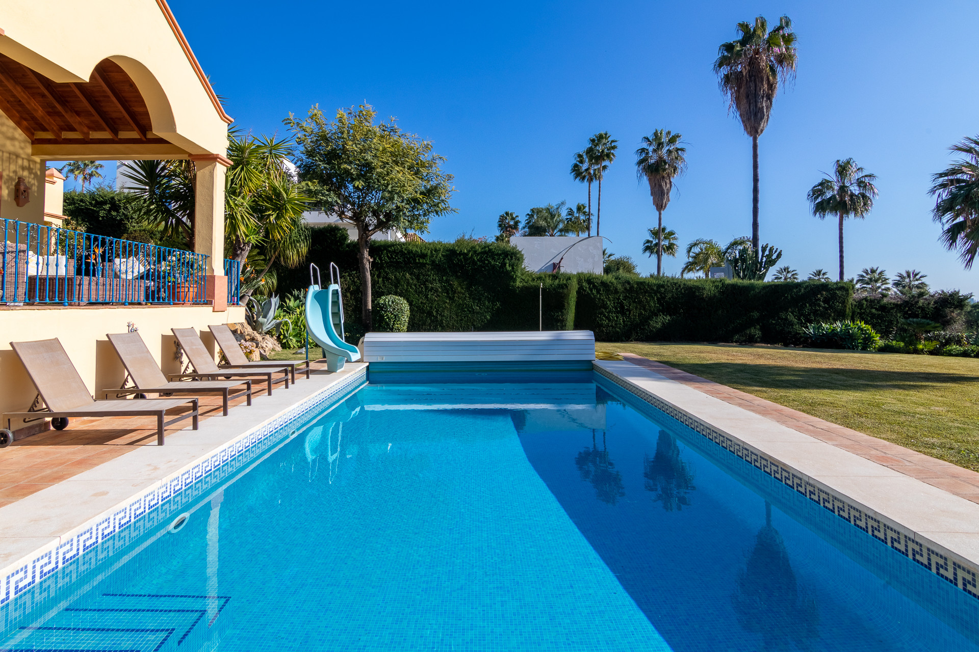 Die Villa in Marbella verfügt über 4 Schlafzimmer und hat eine Kapazität für 8 Person(en). Die bequeme Unterkunft verfügt über 300 m² liegt direkt am Golfplatz und verfügt über eine tolle Aussicht auf die Berge und den Garten. Die Unterkunft befindet sich 1 km vom Golfplatz entfernt, 1 km vom , 2 km von der Bushaltestelle, 2 km vom , 3 km vom Supermarkt, 4 km von der Stadt, 4 km vom , 4 km vom zum Sandstrand, 11 km vom , 41 km vom Wasserpark, 64 km vom Flughafen, 64 km vom , in einer idealen Umgebung für Familien.Die Unterkunft verfügt über einen Garten, Gartenmöbel, ein umzäuntes Grundstück, Terrasse 150 m², eine Waschmaschine, einen Grillplatz, einen Kamin, ein Bügeleisen/-brett, ein Internetanschluss (WLAN), ein Föhn, ein Balkon, eine Alarmanlage, eine Zentralheizung, eine Klimaanlage in allen Schlafzimmern, ein Privatpool, einen klimatisierter Privatpool, einen Parkplatz im Freien auf dem Grundstück, ein Fernsehgeräte, Satelliten-TV (in den folgenden Sprache(n): Englisch).Die Separate Küche mit elektrisches Kochfeld ist ausgestattet in einen Kühlschrank, eine Mikrowelle, ein Backofen, Gefrierschrank, eine Spülmaschine, Geschirr/Besteck, Kochutensilien, eine Kaffeemaschine, einen Toaster, einen Wasserkocher und Küchengeschirr.