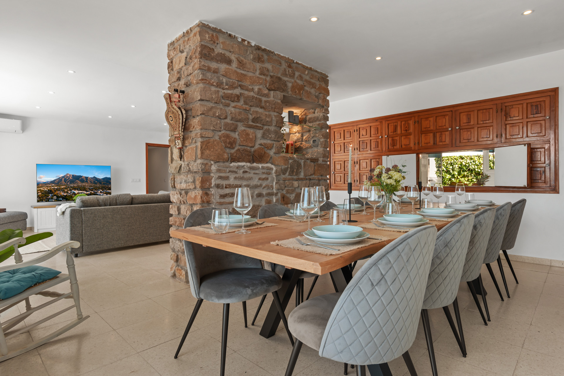 Die Villa in Marbella verfügt über 5 Schlafzimmer und hat eine Kapazität für 10 Person(en). Die bequeme und voll ausgestattete Unterkunft verfügt über 290 m² und verfügt über eine tolle Aussicht auf den Strand / das Meer und den Garten. Die Unterkunft befindet sich 170 m vom Supermarkt entfernt, 200 m von der Bushaltestelle, 500 m vom , 500 m vom , 1 km vom zum Sandstrand, 3 km vom Golfplatz, 5 km von der Stadt, 8 km vom , 16 km vom Wasserpark, 40 km vom , 40 km vom Flughafen, in einer idealen Umgebung für Familien.Die Unterkunft verfügt über einen Garten, Gartenmöbel, ein umzäuntes Grundstück, Terrasse 50 m², eine Waschmaschine, einen Trockner, einen Grillplatz, einen Kamin, ein Bügeleisen/-brett, ein Internetanschluss (WLAN), ein Föhn, eine Zentralheizung, eine Klimaanlage, ein Privatpool, einen Parkplatz im Freien (2 Stellplätze) auf dem Grundstück, ein Fernsehgerät.Die Separate Küche mit elektrisches Kochfeld ist ausgestattet in einen Kühlschrank, eine Mikrowelle, ein Backofen, Gefrierschrank, eine Spülmaschine, Geschirr/Besteck, Kochutensilien, eine Kaffeemaschine, einen Toaster, einen Wasserkocher und Küchengeschirr.